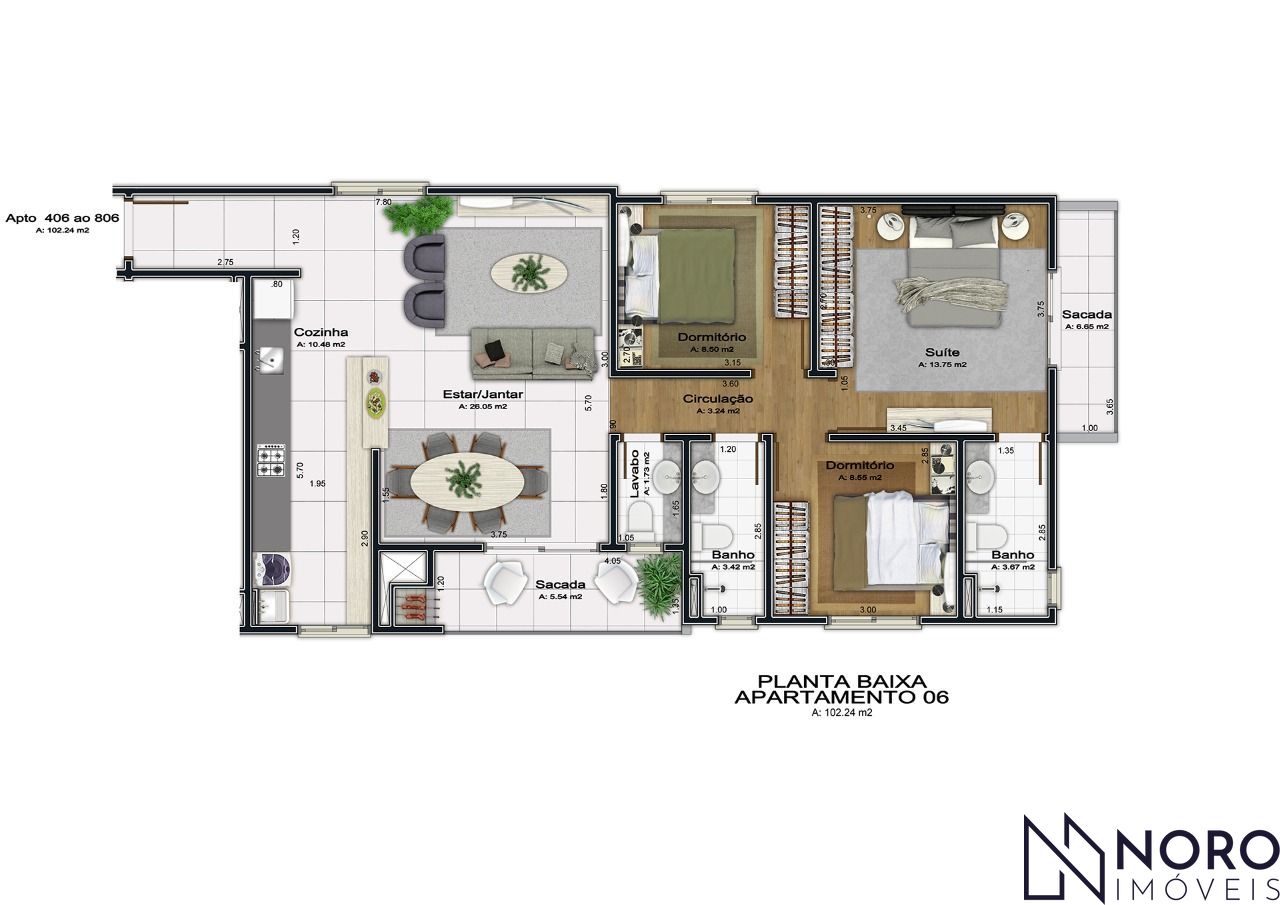 Com 3 dormitórios, sendo 1 suíte com sacada, lavabo, sacada com churrasqueira para momentos de lazer, 1 vaga de garagem, vista privilegiada dos morros, automação residencial completa.
