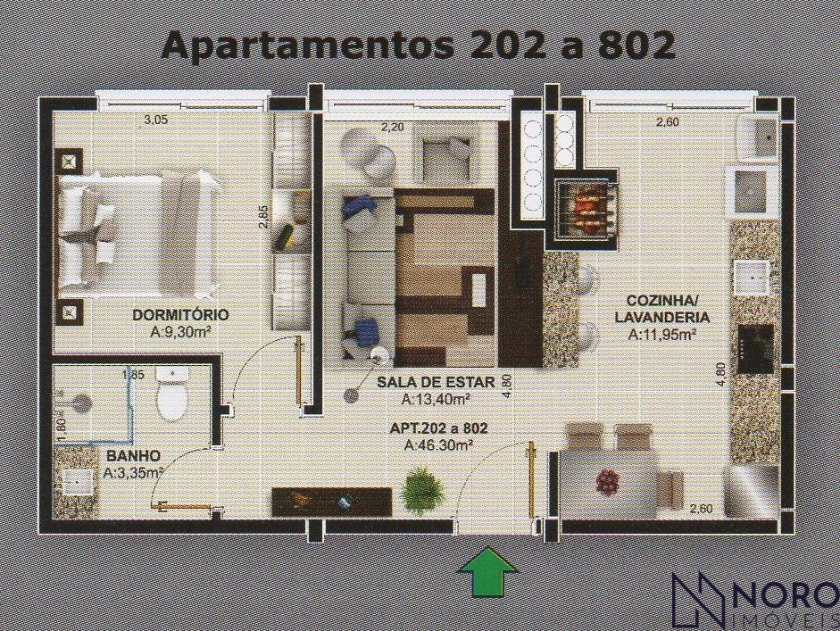 Apartamento com 1 Dormitórios à venda, 46 m² por R$ 190.000,00
