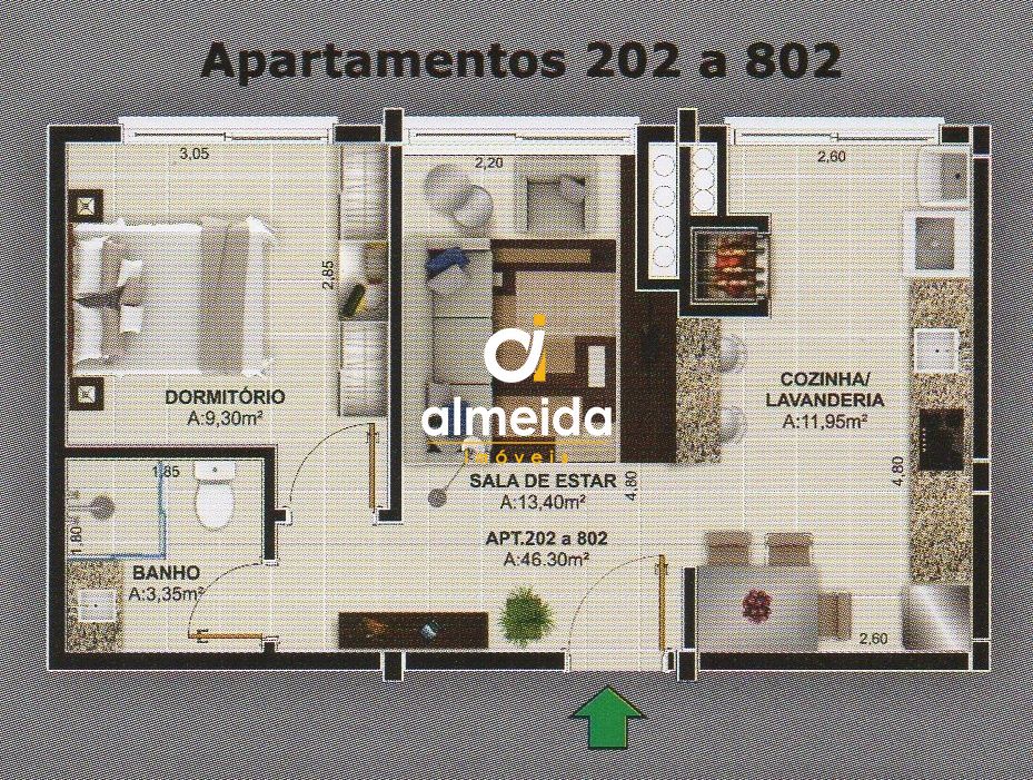 Apartamento com 1 Dormitórios à venda, 46 m² por R$ 215.000,00