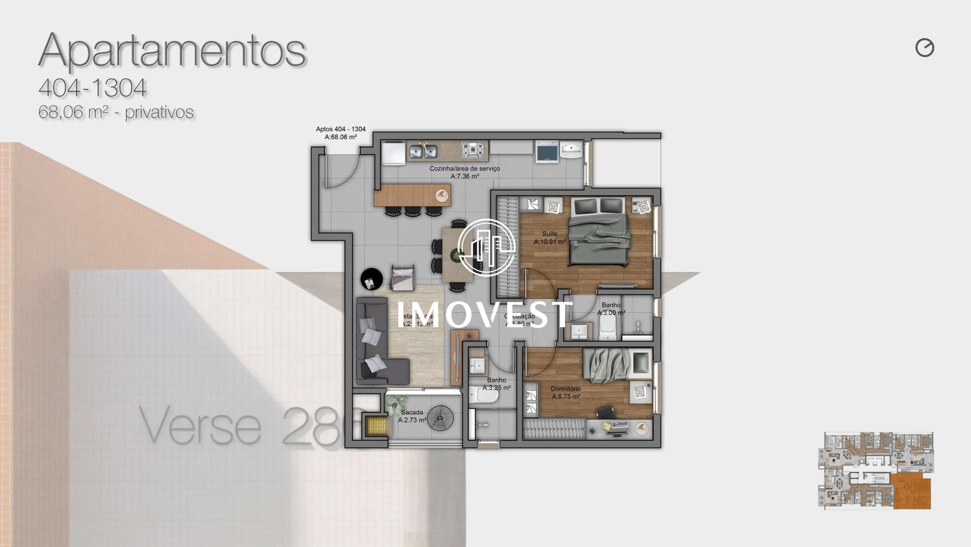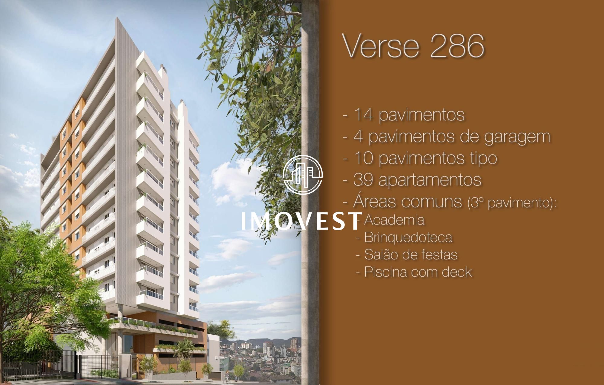 Com um projeto que busca valorizar o ponto alto do terreno, valorizando a paisagem e insolação. A funcionalidade da planta prioriza e aproveita todo o espaço privativo do apartamento. A linguagem contemporânea sóbria está em todo o empreendimento, deixando-o mais atemporal e elegante, sem extravagâncias, mas conectado ao bairro e à cidade. Com uma localização privilegiada, o empreendimento dá fácil acesso as rodovias e principais avenidas, mas ao mesmo tempo tem todos os serviços na media de 500 metros, podendo fazer quase tudo a pé. O Verse 286 é um projeto que une design contemporâneo e funcionalidade, pensado para oferecer conforto e sofisticação.