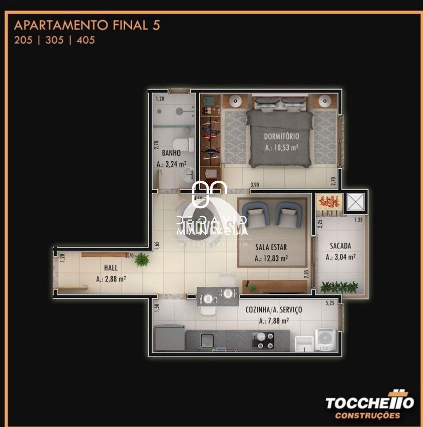 Apartamento com sacada e churrasqueira e com sol da manhã e para dar o toque final a luminosidade natural.