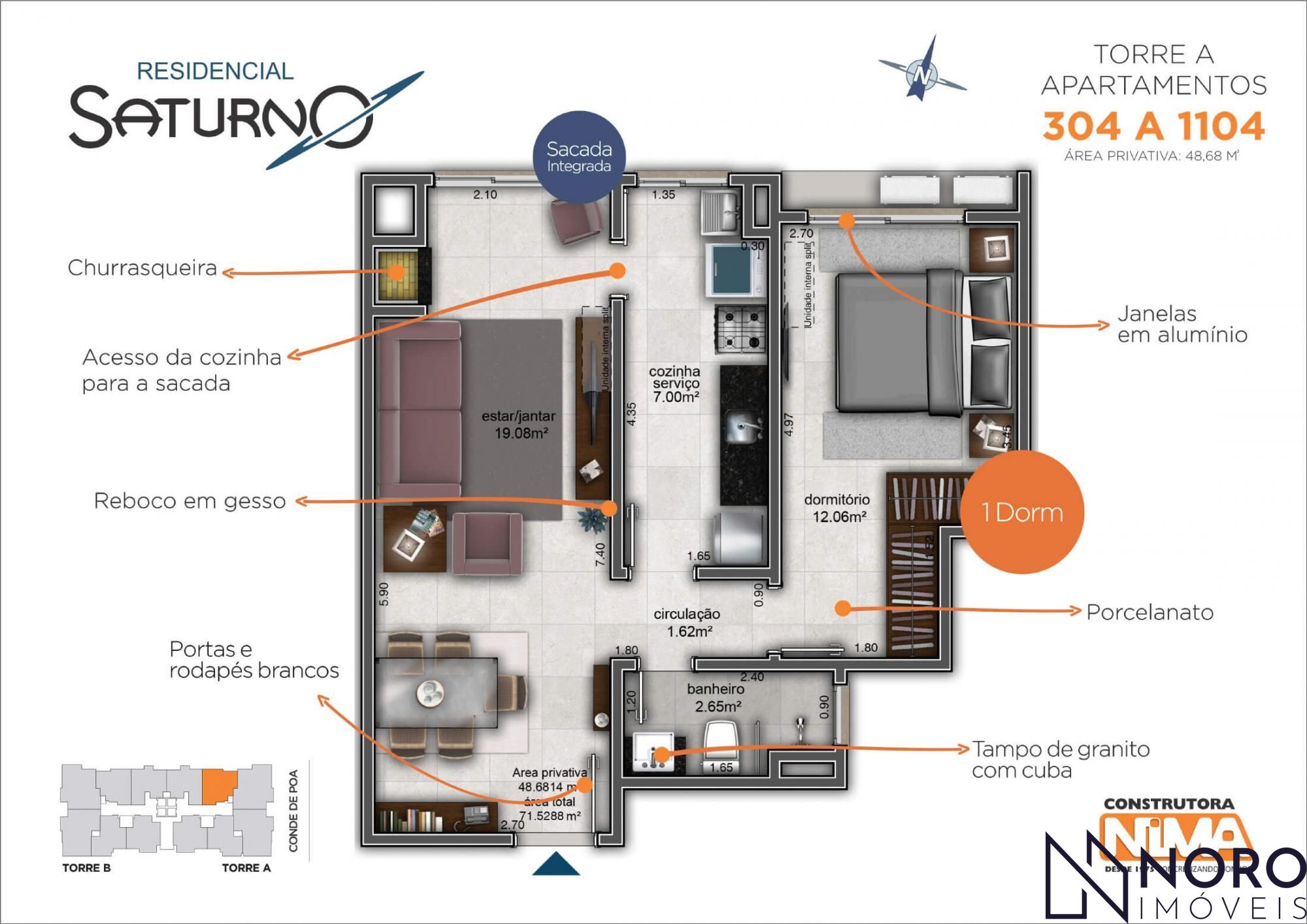 Essa unidade do Residencial Saturno já está pronta para ser sua!! Apartamento de 1 dormitório, amplo e bacana. Acabamentos de primeira, espaços bem ocupados, cozinha e uma ótima sacada integrada com churrasqueira. É só entrar e morar, um investimento seguro e de qualidade, prédio com uma ótima infra estrutura, 4 elevadores, salão de festas e preço acessível. Bem localizado, próximo a UFN. Região central a 5 quadras do calçadão, próximo parada UFSM PERFEITO PARA INVESTIR E ESPECIAL PARA VIVER Prédio novo, seguro, todo pastilhado e de muito bom gosto, com preço acessível.