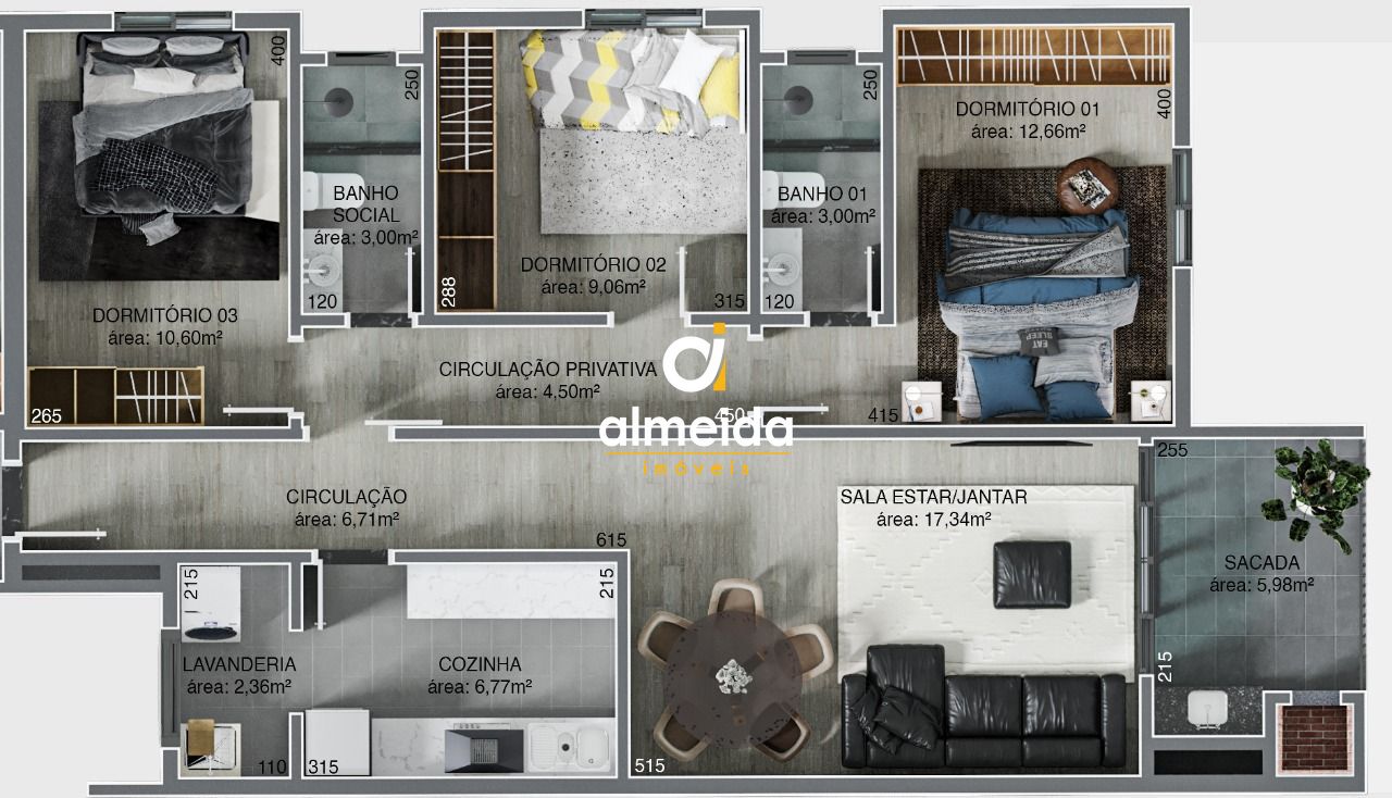 Apartamento com 3 Dormitórios à venda, 96 m² por R$ 600.000,00