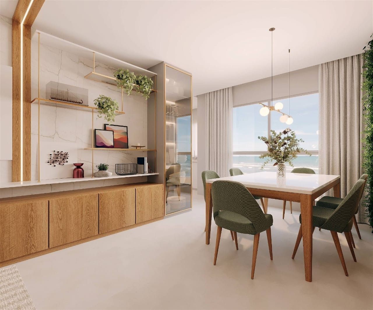 UNIDADE Living Área de Serviço Infraestrutura para água quente Espera para split Acabamento em gesso Churrasqueira Porcelanato Hidrômetro Individual Sacada Interfone Gás Individual Aquecimento á Gás EMPREENDIMENTO Academia Salão de festa Entrada p/ banhistas e box de praia Hall de entrada decorado e mobiliado Medidores de água , luz e gás individuais Elevador Interfone Piscina