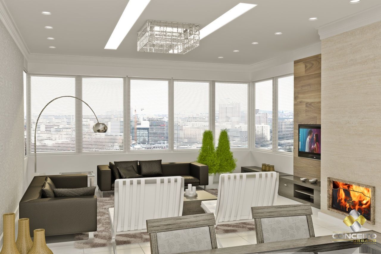 Ampla área social, com sacada integrada e fechada