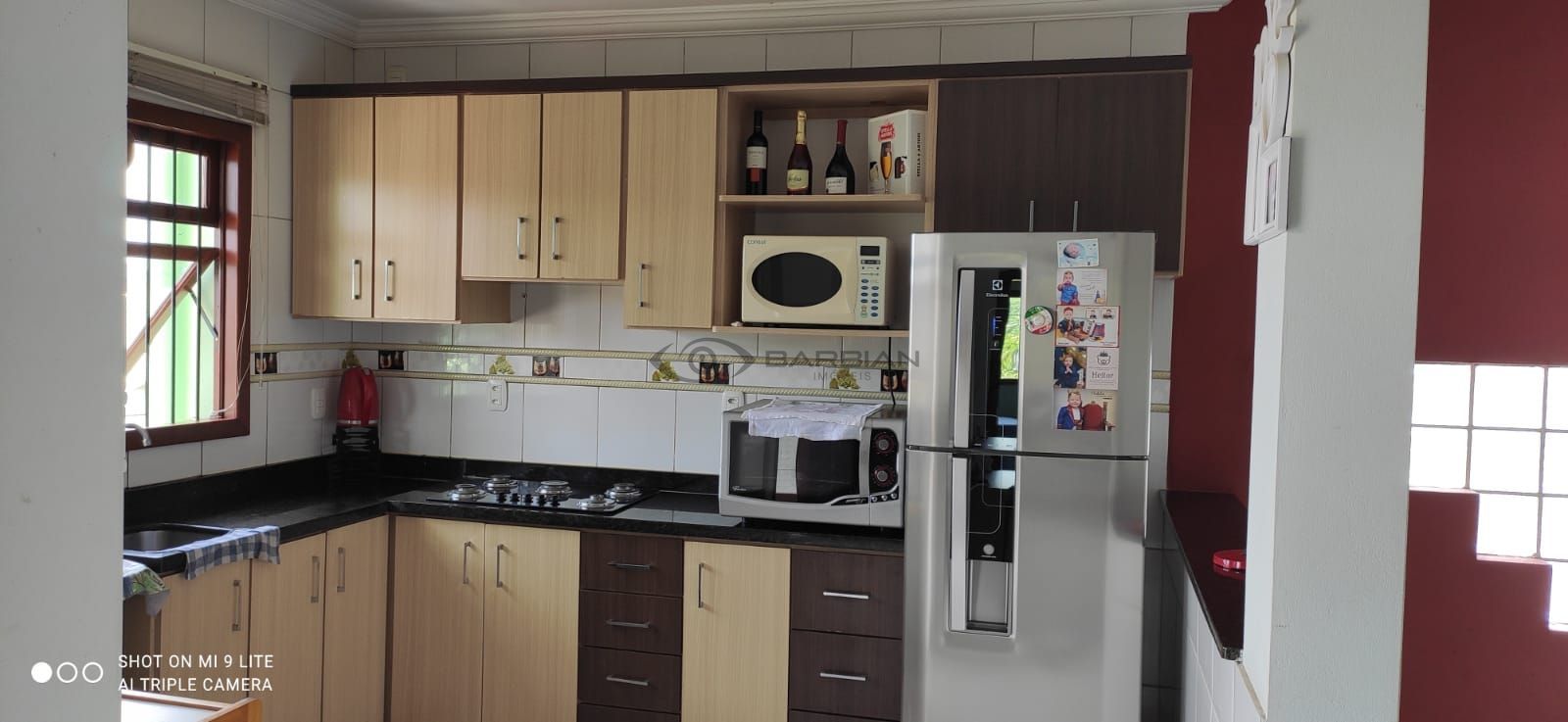 Garagem com churrasqueira, sacada gourmet, telha romana, portão eletrônico, split, cozinha mobiliada.