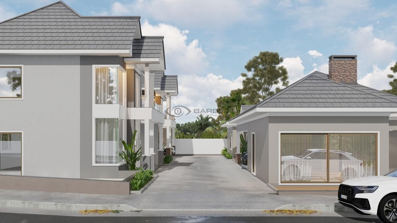 Condomínio composto de 2 duplex's e 1 casa térrea Todos com 3 suítes, sala de estar e jantar, cozinha, lavabo, churrasqueira, Garagem para 2 carros Pátio para piscina. Condomínio possui academia.
