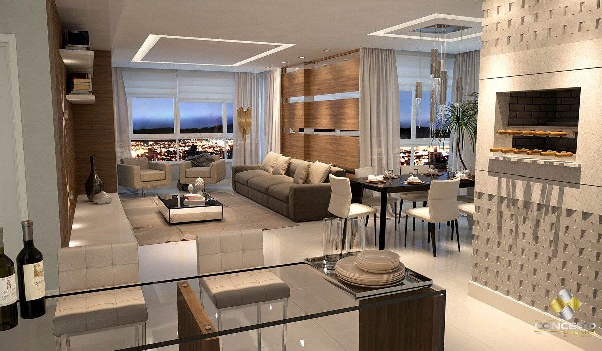 Amplo living, com sacada integrada e fechada