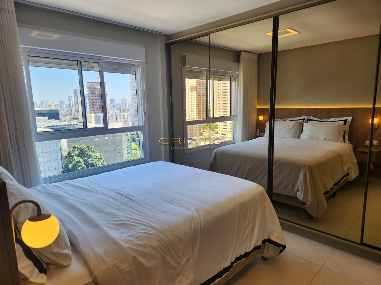 Suíte master com armário espelhado de 4 portas
