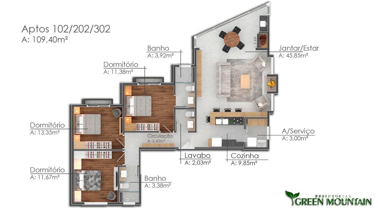 Belíssimo apartamento com 109 metros quadrados de área privativa, distribuídos em 3 dormitórios sendo 2 suítes, sala de estar com espera para lareira, sala de jantar e cozinha com churrasqueira integrada, lavabo, banho social, área de serviço e uma vaga de garagem. Contará com piso aquecido nas salas, banheiros e cozinha esperas para calefação, água quente e split.