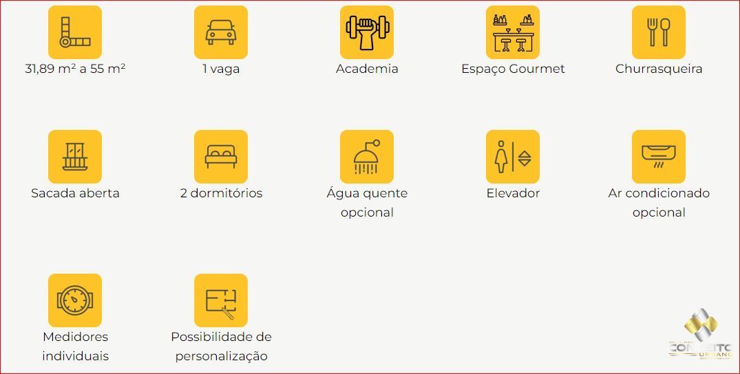 Residencial do Programa Casa Verde Amarela Apartamento de 2 dormitórios com 54,7m² privativos Você pode financiar a entrada até entrega da obra 16 unidades Studio com 31,89 metros quadrados Áreas de Lazer completo: Coworking, espaço fitness, espaço gourmet e brinquedoteca Paredes com acabamento liso e com pintura acrílica; Piso cerâmico na cozinha/lavanderia, banheiro e sacada; Banho: azulejo até o forro no box. Na parede hidráulica azulejo até 1,60 m, acima de 1,60m e demais paredes acabamento liso com pintura acrílica; Cozinha: azulejo até 1,60 m na parede hidráulica. Acima de 1,60 m e nas demais paredes acabamento liso e pintura acrílica; Lavanderia: Azulejo até 1,60 m atrás do tanque; Gás encanado com ponto para o fogão; Forro de gesso no banheiro, cozinha e sacada; Teto de dormitórios, circulação e sala com acabamento liso e com pintura acrílica; Medidores individuais de água, luz e gás: Fachada externa rebocada e texturizada. Interfone com porteiro eletrônico Todos os apartamentos inclusive os Studios com box de garagem Janelas de alumínio com persiana de PVC nos dormitórios; Maiores informações vanderlei sperotto creci 45.646 54 999 663454