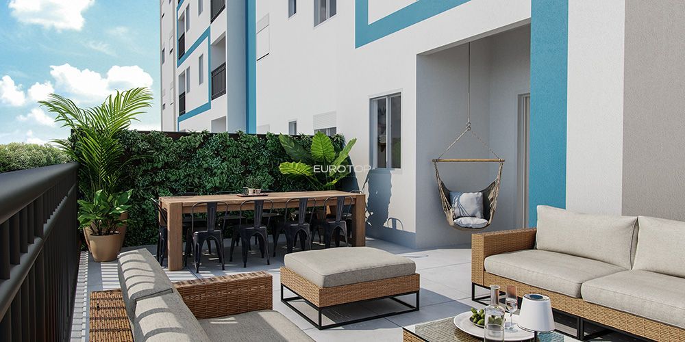 Eurotop vende excelente apartamento de 2 dormitórios com terraço, churrasqueira, sala de estar/jantar, cozinha americana, área de serviço, banheiro social, vista privilegiada, ótima orientação solar norte e 1 vaga de garagem fechada. Condomínio com salão de festas, espaço gourmet, academia, brinquedoteca, espaço pet, playground e praça. Todos as áreas de uso comum entregues mobiliadas e decoradas! Financiável! Excelente custo x benefício!