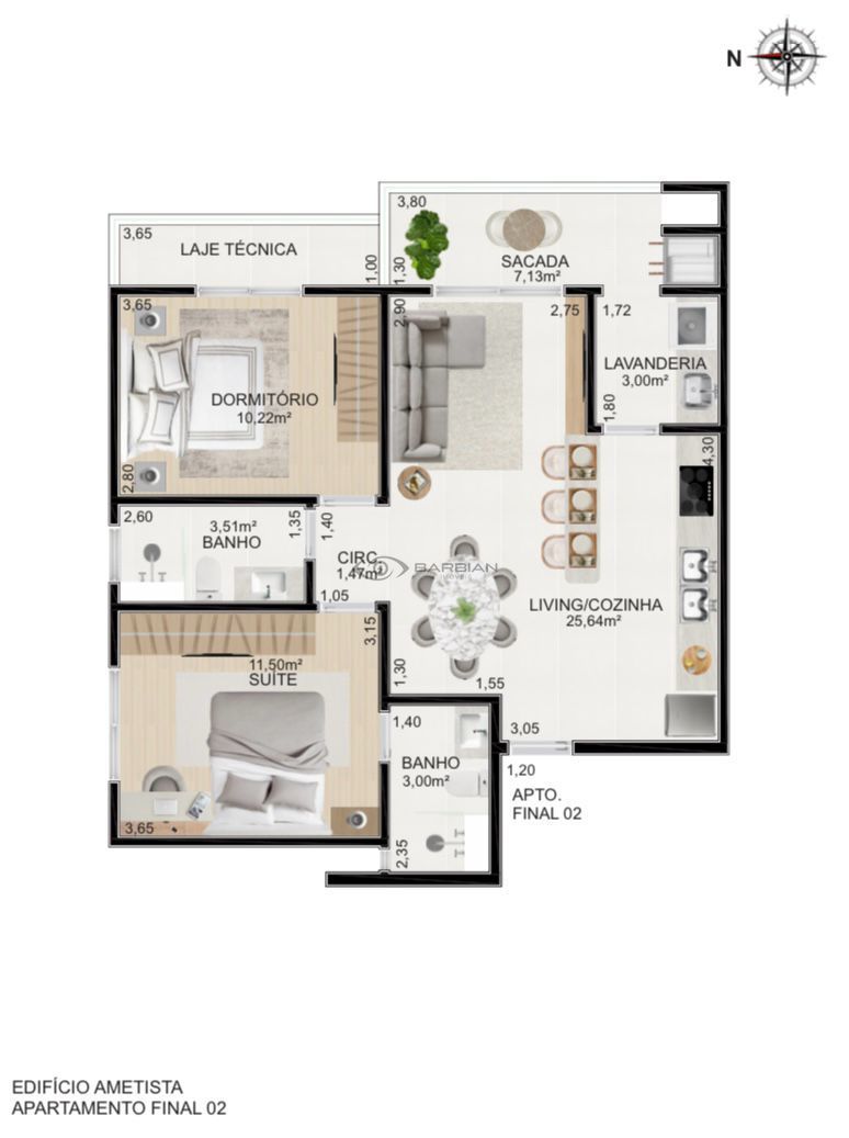 Belíssimo e novo empreendimento próximo a UNISC! PREVISÃO ENTREGA: JUNHO 2026 Pagamento: entrada + reforços + 60x parcelado (aceita proposta). Residencial Ametista -02 dormitórios (1 suíte) -02 banheiros; -Estar/jantar com cozinha integrada; -Lavanderia; -Laje técnica; -Sacada com churrasqueira; -Apenas dois apartamentos por andar (sete andares); -Com as melhores posições solares, Lestenorte - Norte/oeste. Previsão de entrega: JUNHO/2026 Pagamento: entrada + reforços + 60x parcelado (aceita proposta). Diferenciais: -Aberturas serão todas em alumínio branco na linha Premium; -Água e gás, individualizados; -Pisos dos dormitórios em laminado de madeira e demais ambientes em porcelanato retificado em cor clara; -Água quente em todos os pontos de água, gás central; -Pontos de ar condicionado tipo split nos dormitórios e sala estar e jantar; -Na parte da térrea, um bicicletário para os moradores e um box de estacionamento para pessoas de necessidades especiais.