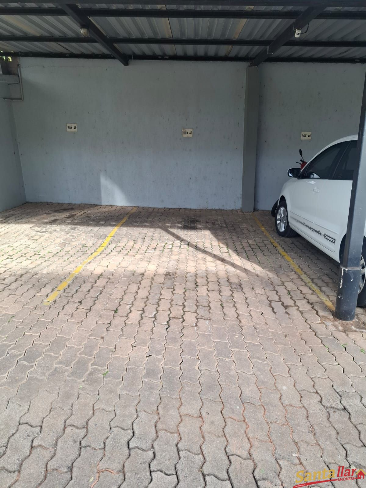 O imóvel conta com 2 dormitórios, sala de estar com churrasqueira integrada, sala de jantar e cozinha conjugadas, box de garagem coberto.