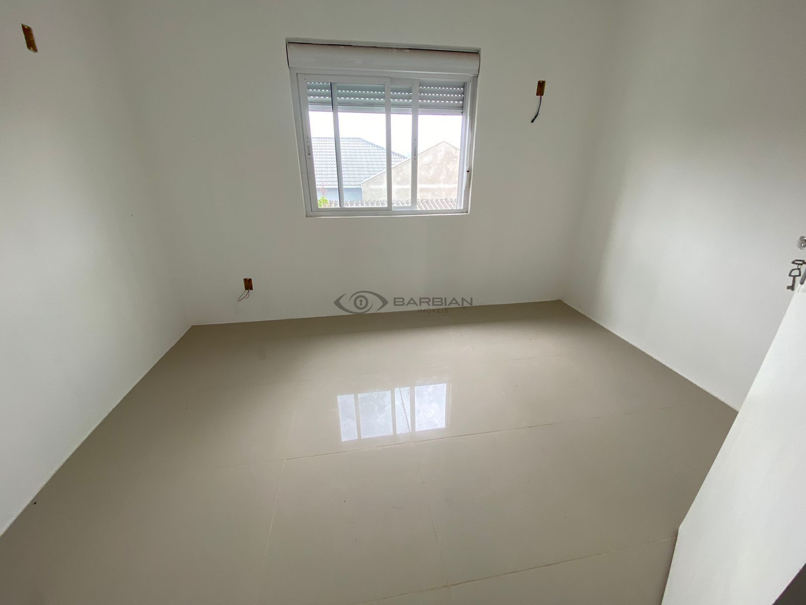 Piso em porcelanato, e aberturas de alumínio (com persianas de PVC nos quartos)