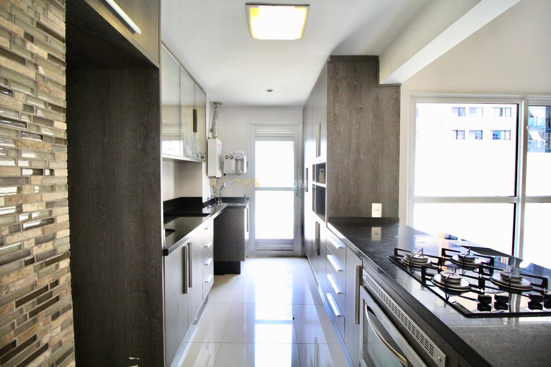 O closet completo, com armários sob medida, ocupa grande parte do segundo pavimento do duplex, oferecendo um ambiente amplo, organizado e confortável. A cozinha, também equipada com armários planejados, garante praticidade e aproveitamento inteligente dos espaços.