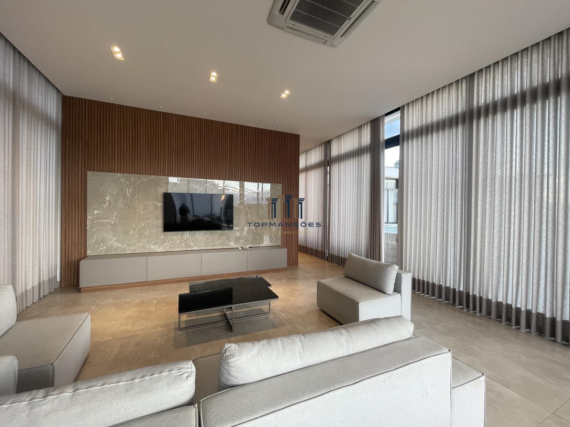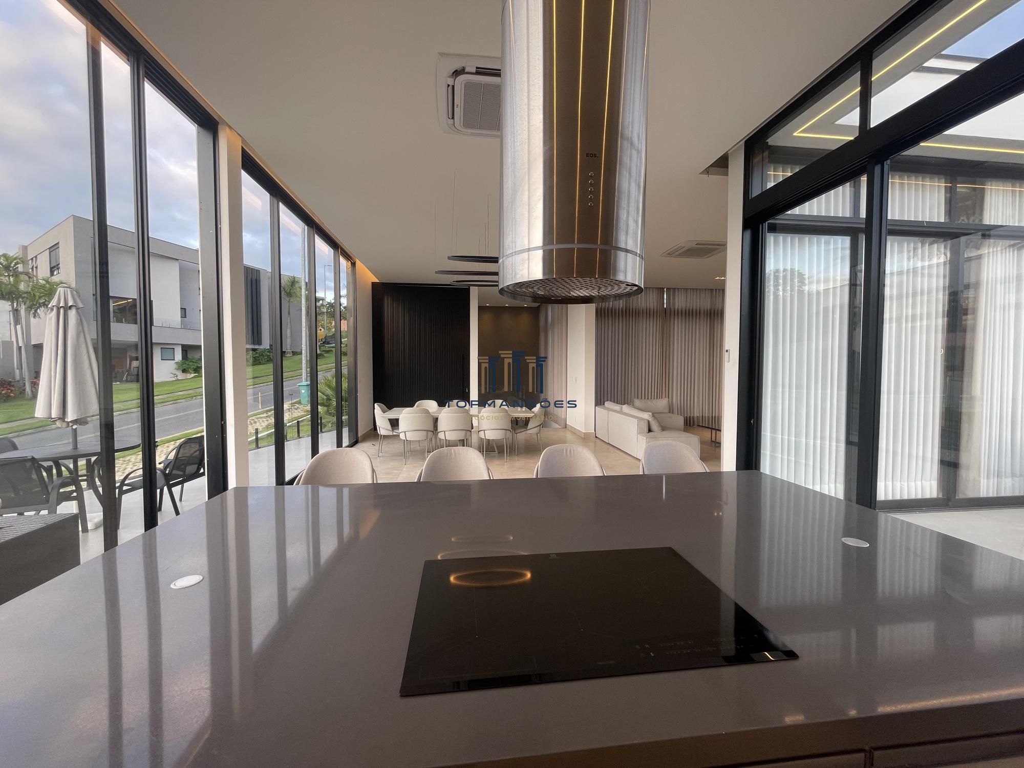 Com arquitetura moderna e sofisticada a casa contém amplo espaço climatizado e integrado dos ambientes sociais, sala cozinha americana, sala de TV e varanda.