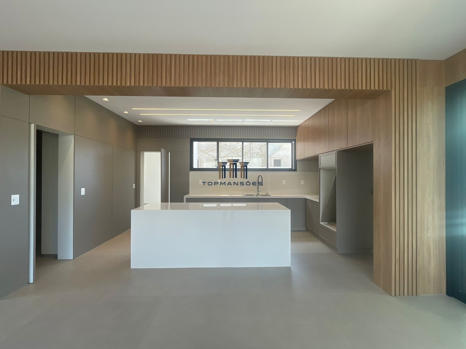 Cozinha estilo americano toda planejada com bancadas em Nano Glass, despensa, iluminaçoes em LED.
