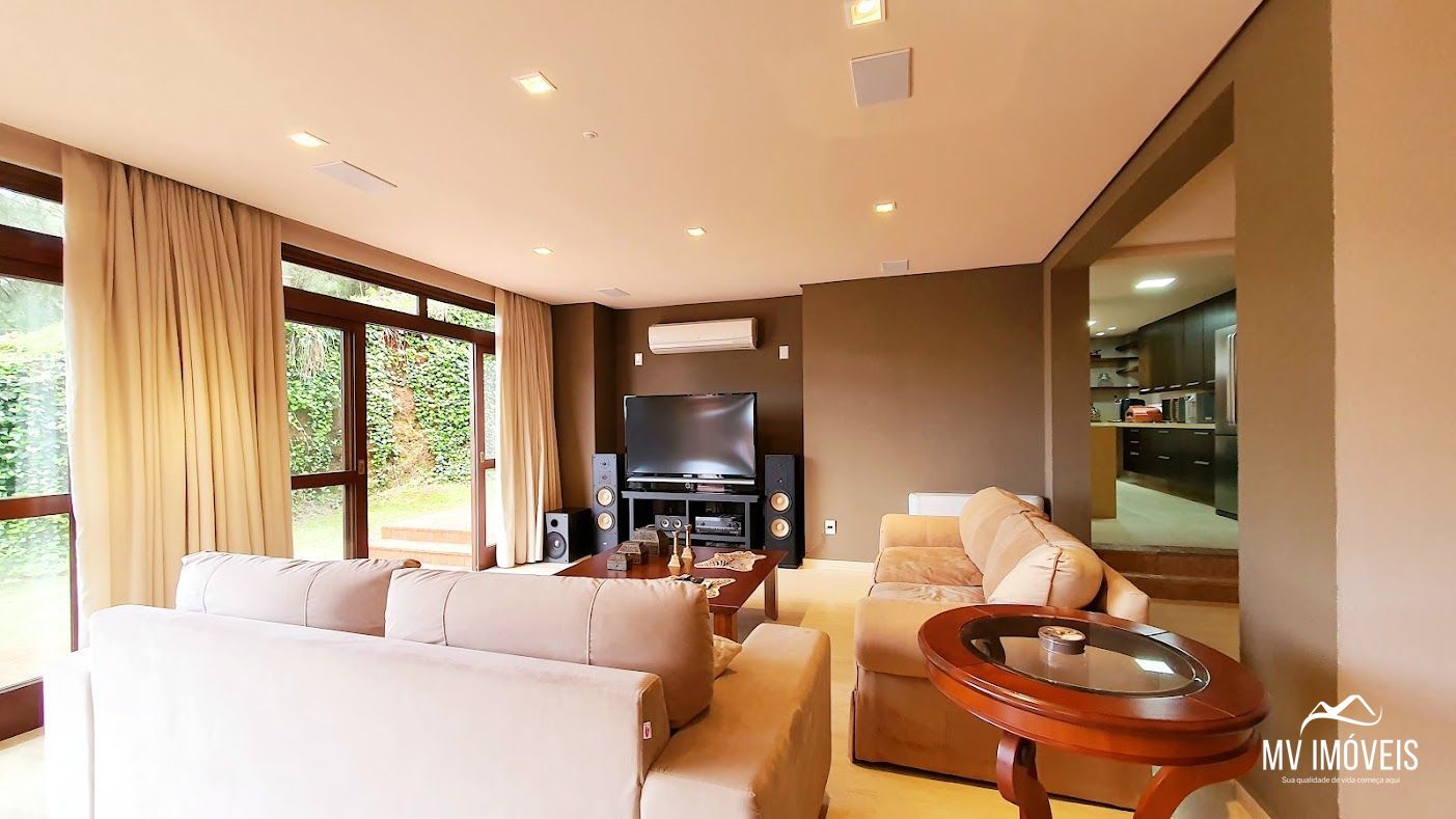 Construída dentro no condomínio Aspen Mountain em Gramado, com mais de 1100 metros quadrados, muito bem distribuída com ambientes íntimos e sociais que aproveitam muito bem a posição e a vista para o vale.