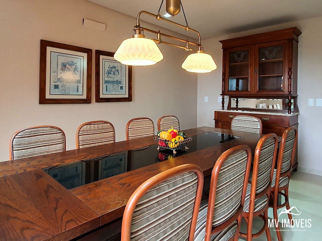 Sendo 8 suítes, estar social amplo, sala de home cinema, espaço gourmet, cozinha separada toda equipada.