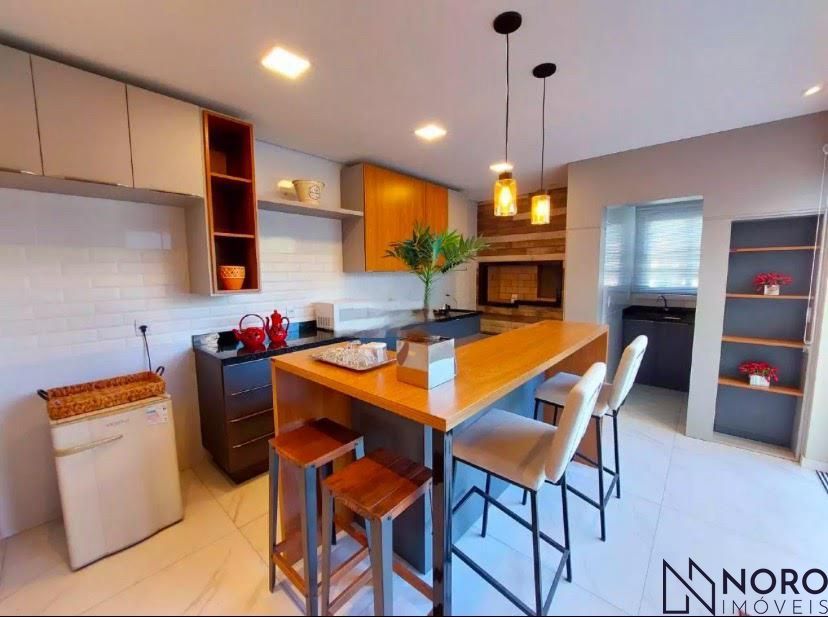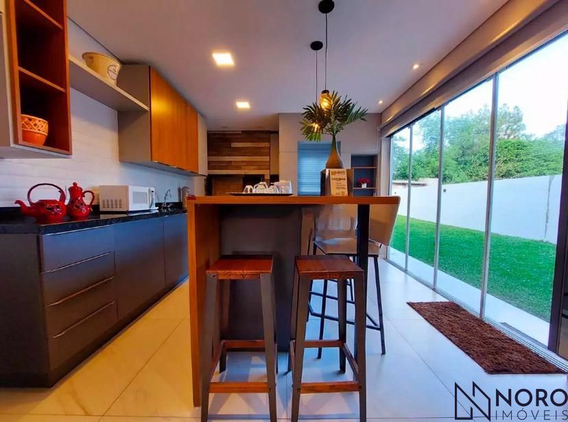 Seja bem-vindo ao exclusivo condomínio de casas de alto padrão, onde o luxo se encontra com o conforto para oferecer a você e sua família a experiência de vida que vocês merecem. Apresentamos uma deslumbrante casa duplex que redefine o conceito de elegância e sofisticação. Com 3 dormitórios, incluindo uma suíte com sacada, espaço amplo e aconchegante para toda a família, banho social e lavabo, conforto e praticidade para moradores e convidados, sala de estar acolhedora com lareira, o cenário perfeito para momentos de relaxamento e convívio, espaço gourmet Integrado com parrilla, ideal para reunir amigos e familiares em encontros memoráveis, 2 vagas de garagem, comodidade e segurança para seus veículos, pátio amplo para sua área de lazer. Acabamento Classe A, detalhes cuidadosamente selecionados para o máximo em qualidade, aberturas em PVC, revestimento em porcelanato, elegância e durabilidade combinadas. Escada revestida em mármore travertino, um toque de requinte que impressiona. Guarda corpo em vidro temperado, segurança sem comprometer a vista deslumbrante. Espera para água quente, conforto em todos os cantos da casa. Condomínio oferece salão de festas, academia, sauna, quadras poliesportivas. Venha conhecer e se encantar com a qualidade e conforto deste lugar! Fotos ilustrativas referentes a casa modelo. Agende um visita com nossos corretores!