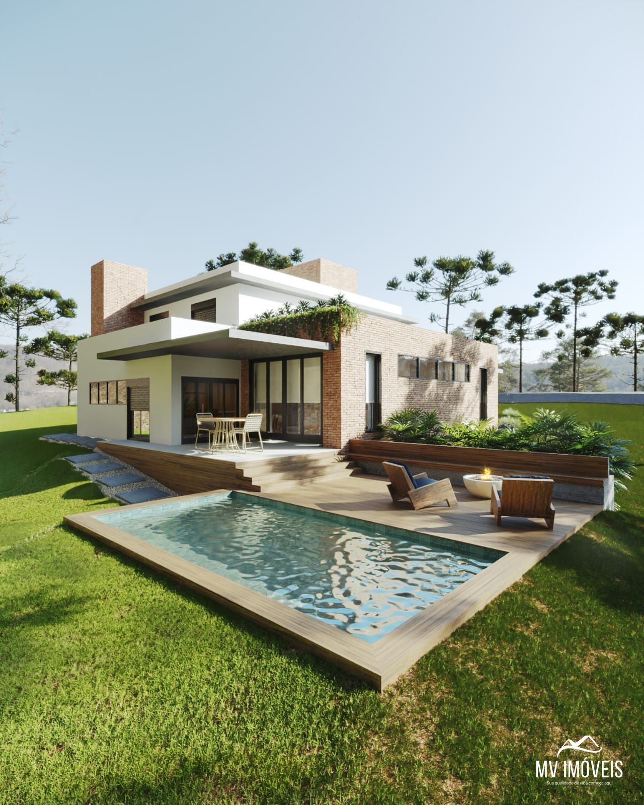 A Casa Araucária, moderna, sofisticada e requinte, ampla com mais 350 metros quadrados privativos distribuídos em 4 Suítes, living de dois ambientes com cozinha gourmet integrada.