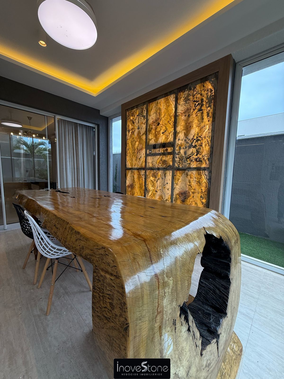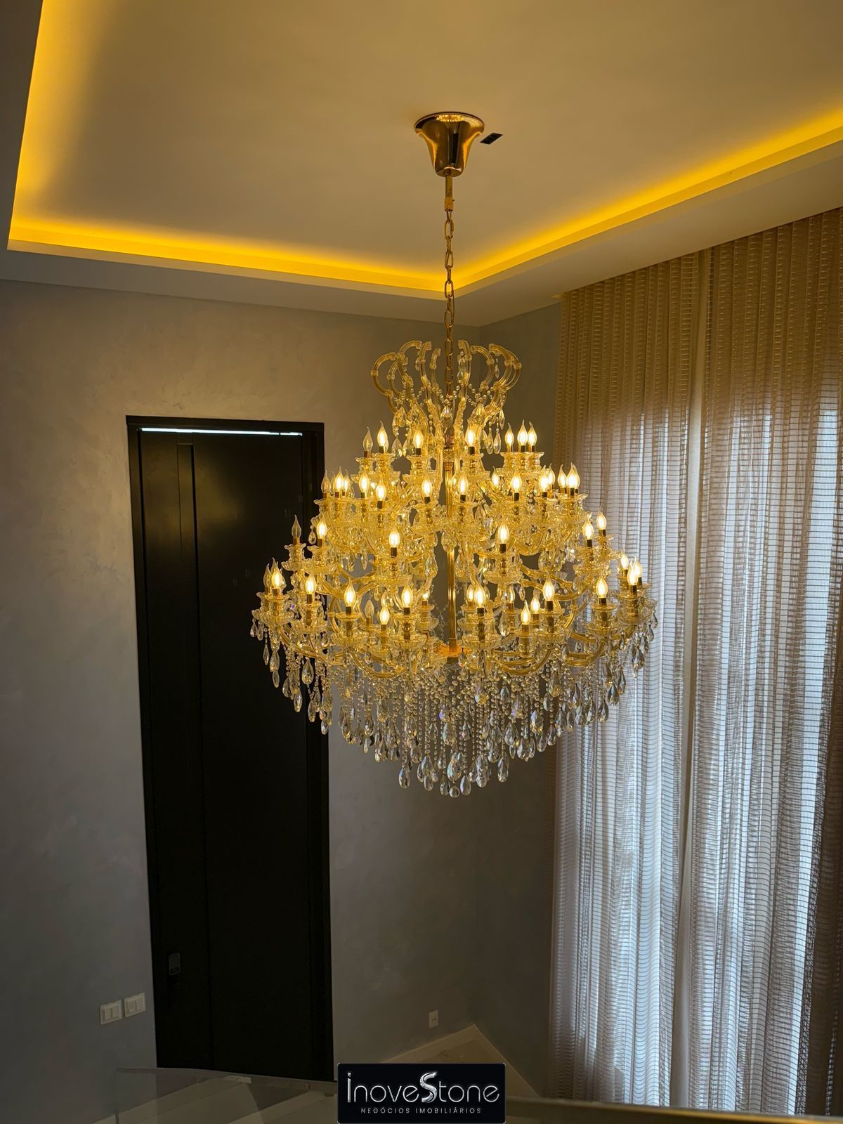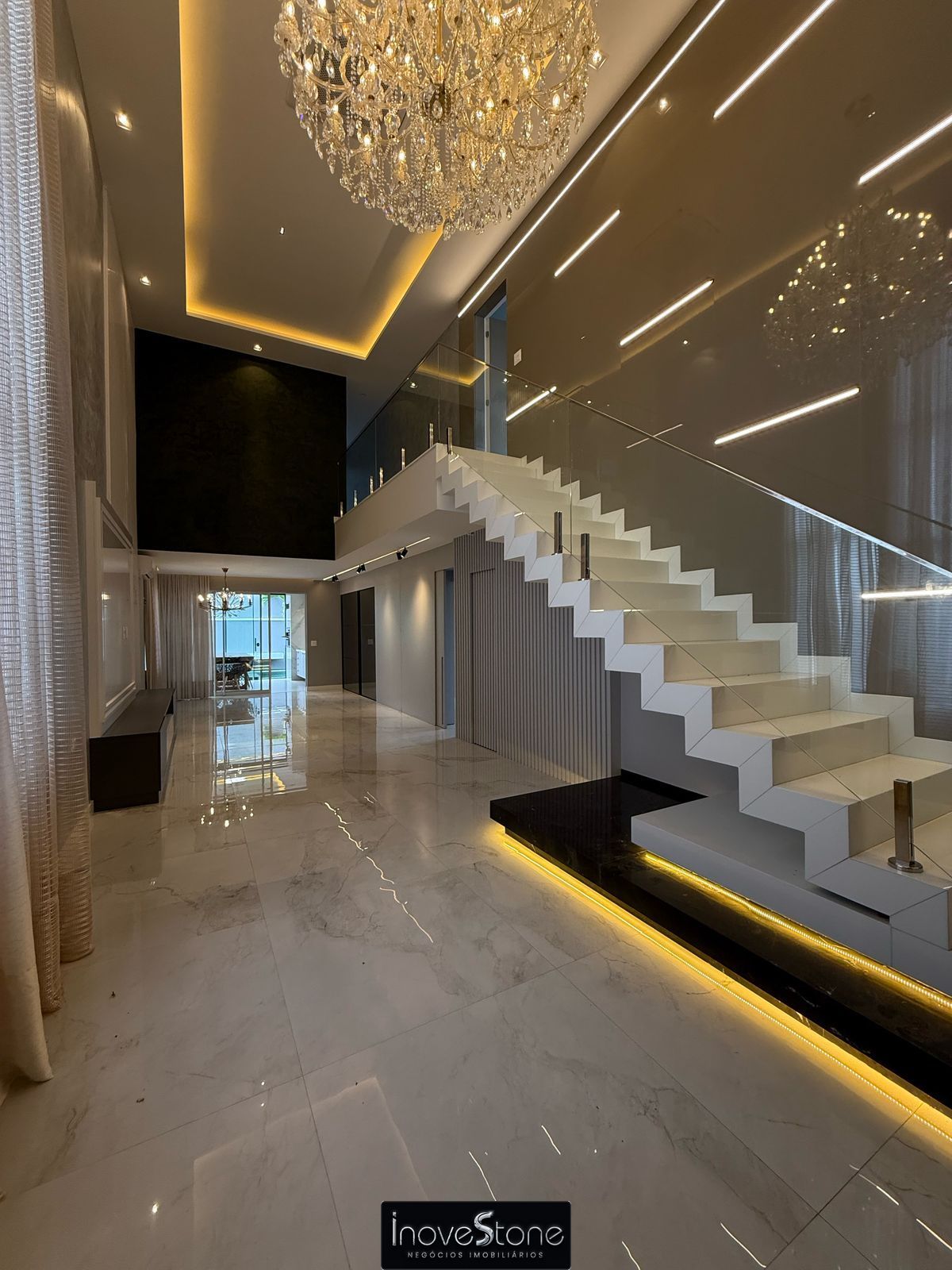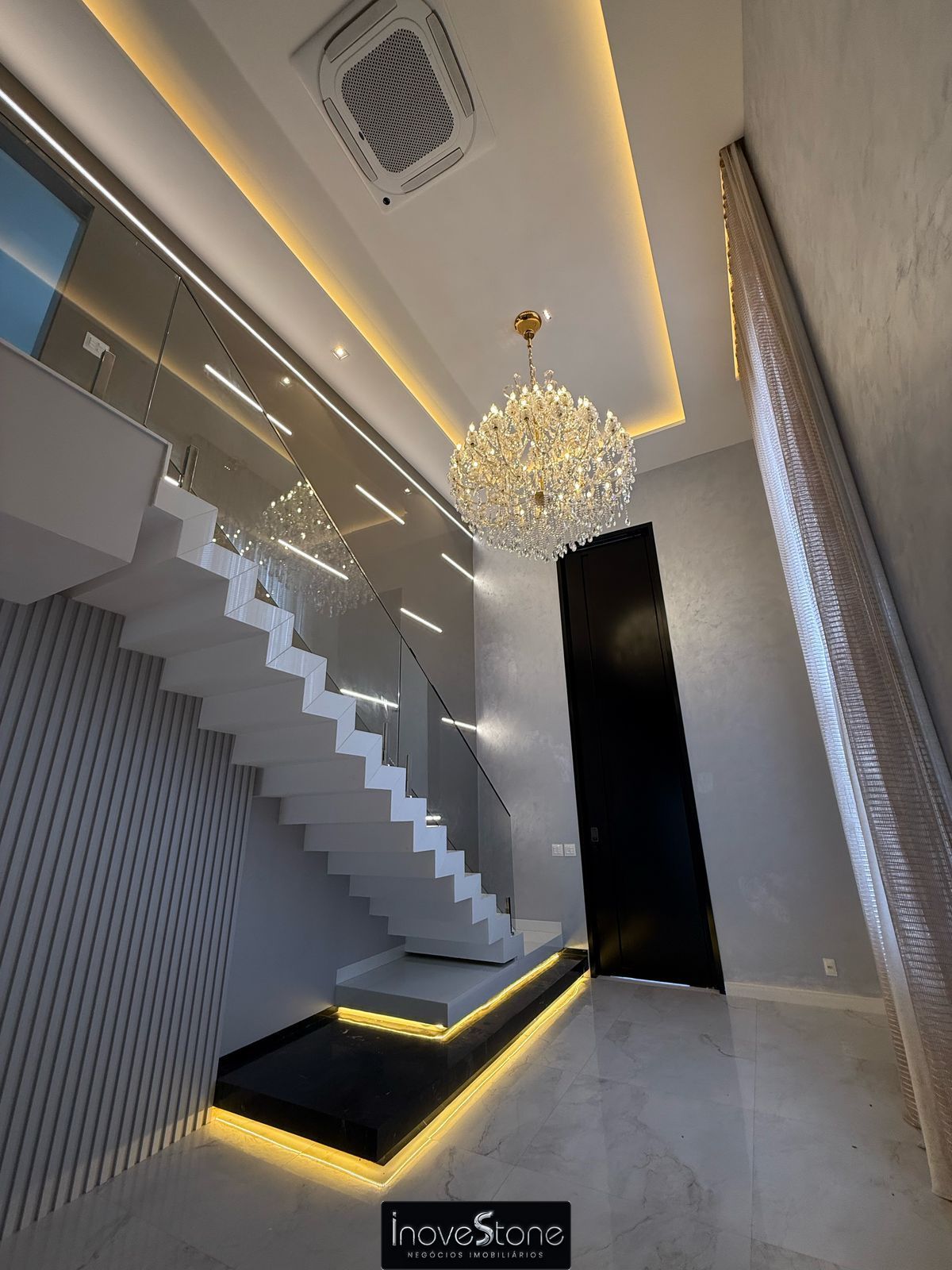 ✔️ sala com pé direito duplo e climatizada.