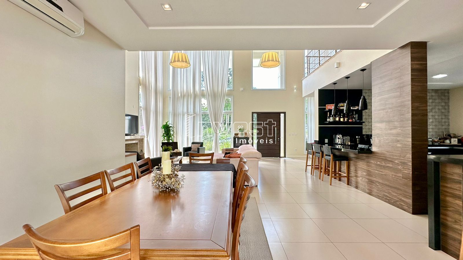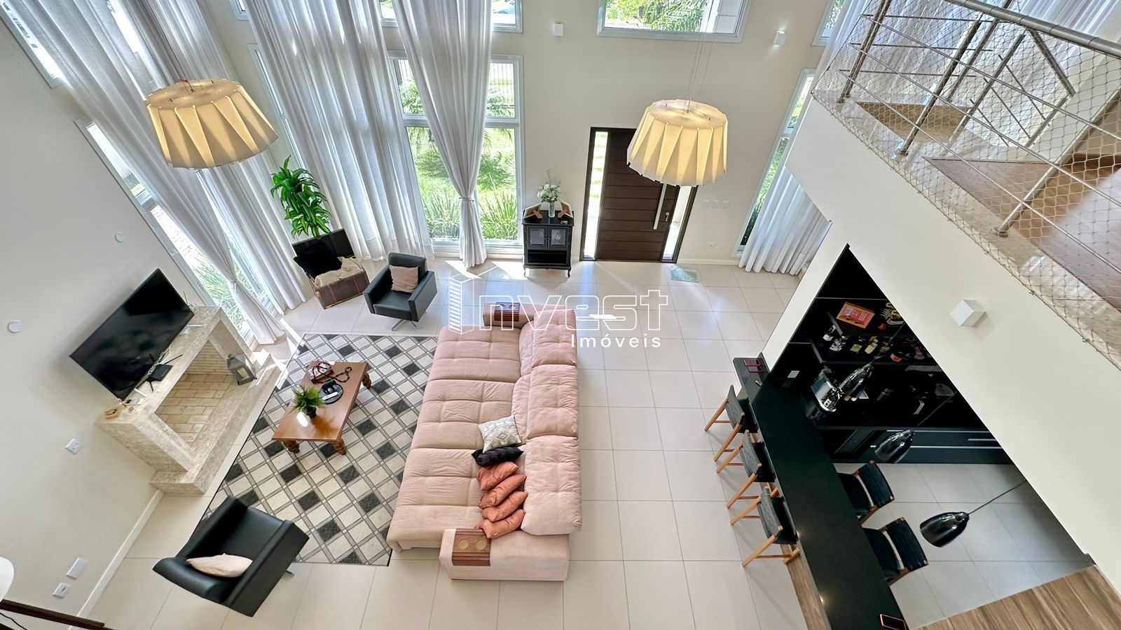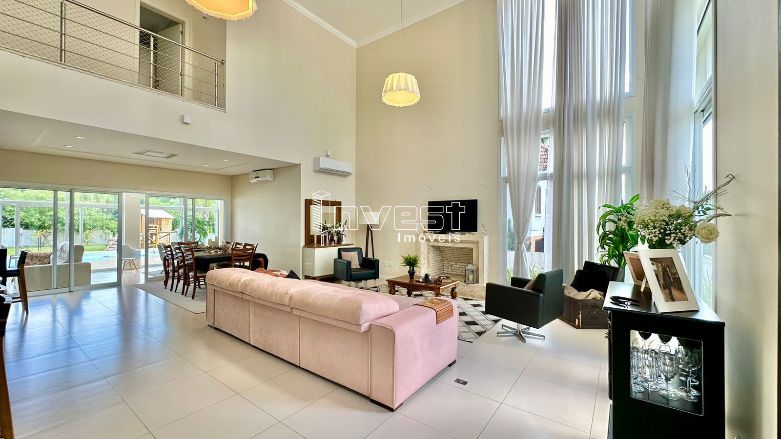 Belíssima casa em condomínio fechado com amplo terreno medindo 981,10m².de área total. 3 dormitórios sendo 1 suíte com closet, mezanino com home office, cozinha ampla e finamente decorada com móveis projetados, churrasqueira e bancada americana, sala de jantar e estar integrados tendo uma perfeita iluminação natural proporcionada por amplas aberturas e duplo pé direito, complementando o ambiente a lareira em destaque. Podemos ainda destacar ampla varada fechada que integra ambiente interno e a piscina. - Sistema de monitoramento de câmera - Móveis Projetados - Eletrodomésticos selecionados - Sacada Imóvel sujeito a confirmação de valores e disponibilidade.