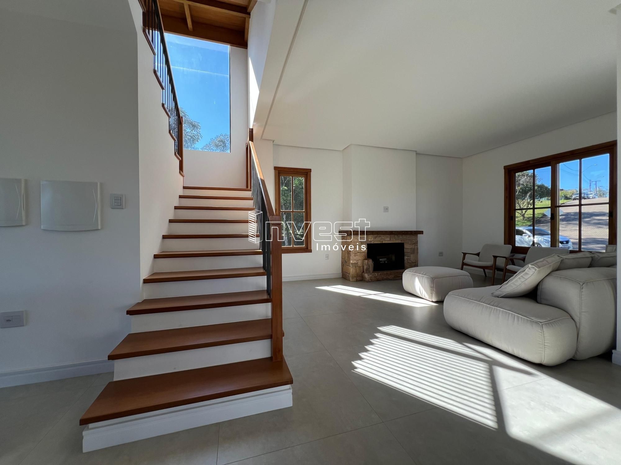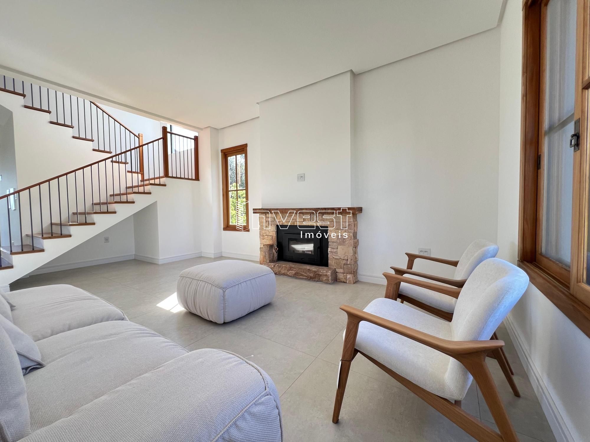 No primeiro pavimento, você encontra uma aconchegante sala de estar com lareira, sala de jantar integrada a cozinha . o ambiente ainda conta com um escritório (ou dormitório opcional), banheiro social, lavanderia e uma ampla varanda gourmet com churrasqueira, perfeita para receber amigos e familiares.
