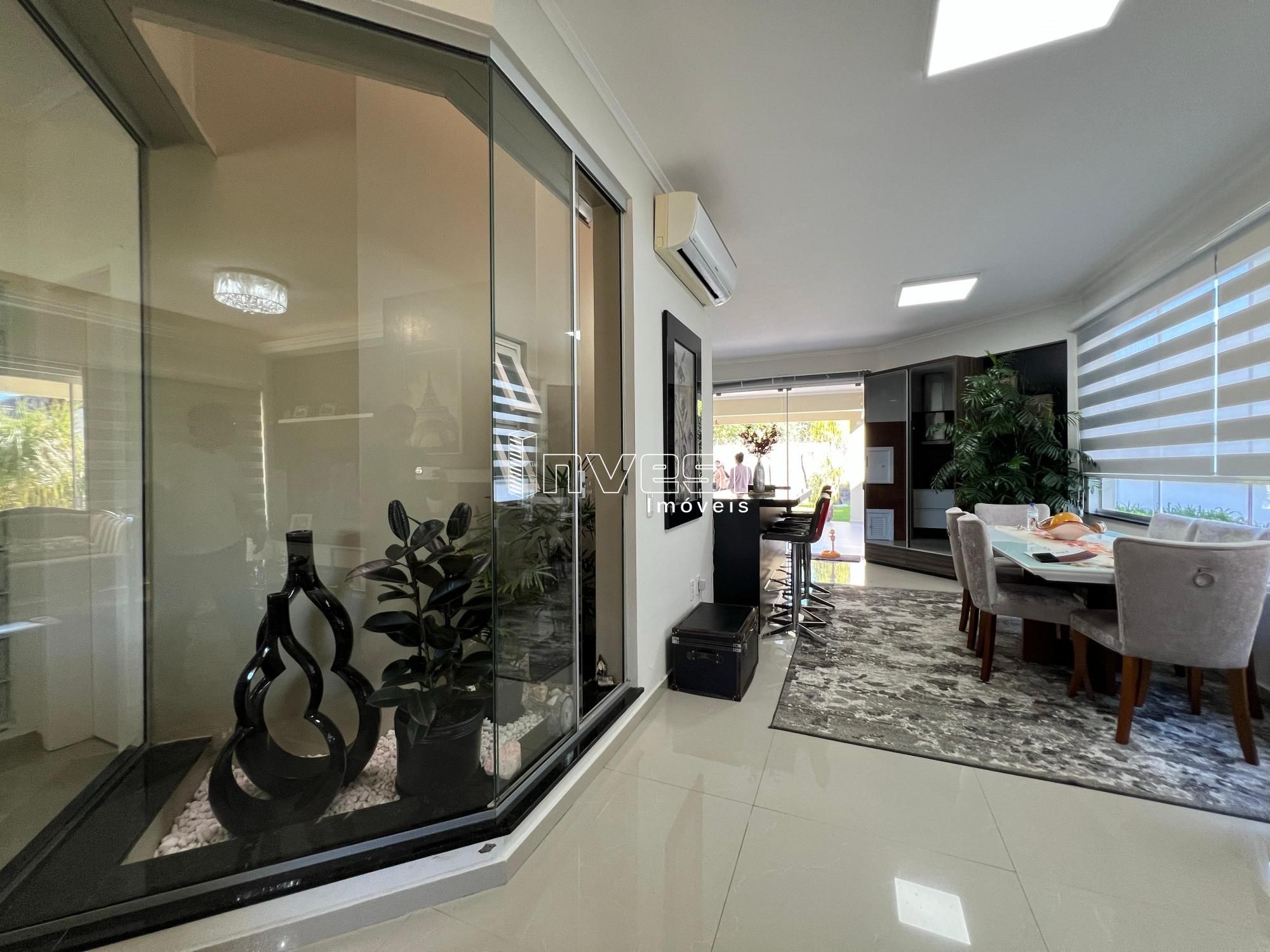 Casa plana localizada em condomínio fechado que prioriza segurança e bem estar, a residência conta com 3 dormitórios sendo uma suíte, sala de estar com lareira e um charmoso jardim de inverno, lavabo, sala de jantar integrada à cozinha proporcionando amplitude, banheiro social, lavanderia e banheiro auxiliar. A casa oferece um lindo pátio, amplo terraço e duas vagas de garagem.