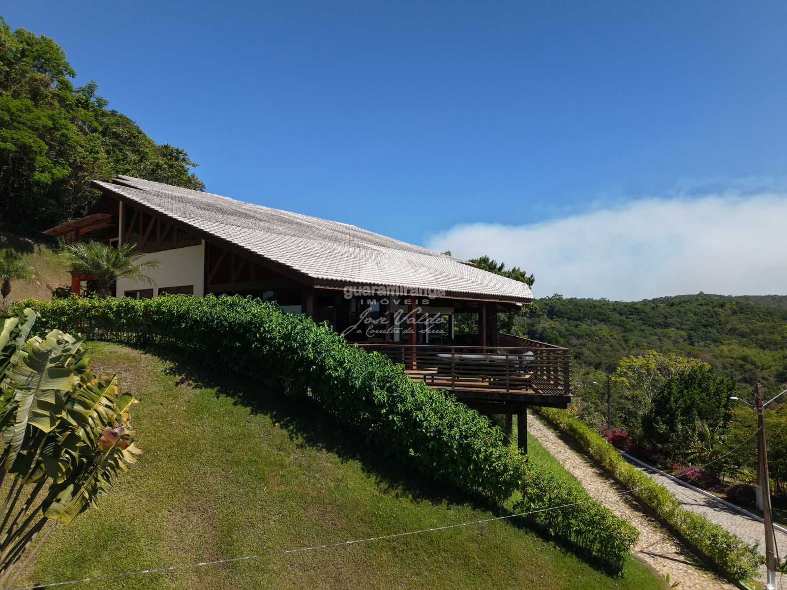 CASA 12 | MONTE FLOR | GUARAMIRANGA ÁREA DO TERRENO: 1.500M² ÁREA CONSTRUÍDA: 600M² TAXA DE CONDOMÍNIO: R$ 2.984,02 (01/2025) ALTITUDE: 867M MOBILIADA Casa luxuosa com 600m² de área construída, com uma das vistas panorâmicas mais bonitas do condomínio, sendo vista lago e para as montanhas. A mansão é dividida em sala 03 ambientes, sala de jantar, lavabo, despensa, adega, lavanderia, área de serviço, cozinha americana, salão de jogos, deck com espaço gourmet e vista para as montanhas, 7 quartos (sendo 6 suítes), possui uma ampla varanda suspensa em madeira com uma vista espetacular e lindo jardim amplo. Vagas para 06 carros já com carregador para carro elétrico. O condomínio é o maior e mais luxuoso condomínio da serra, com 85 unidades luxuosas e uma área de lazer espetacular, com restaurante privativo, piscinas aquecidas adulto e infantil, sauna com repouso, academia, sala de jogos, playground, salão de conveniência, deck panorâmico, churrasqueira, forno de pizza, espaço gourmet, heliponto, quadra de esportes, capela e área de preservação permanente, além de um imenso lago perene com uma pista de caminhada em seu entorno. O condomínio possui 3 portarias 24h e segurança. O condomínio está localizado a 1,4km do centro de Guaramiranga. ☎ Agende sua visita pelos telefones: (85) 98744-8001 / (85) 99864-8001 / (85) 98685-9164.
