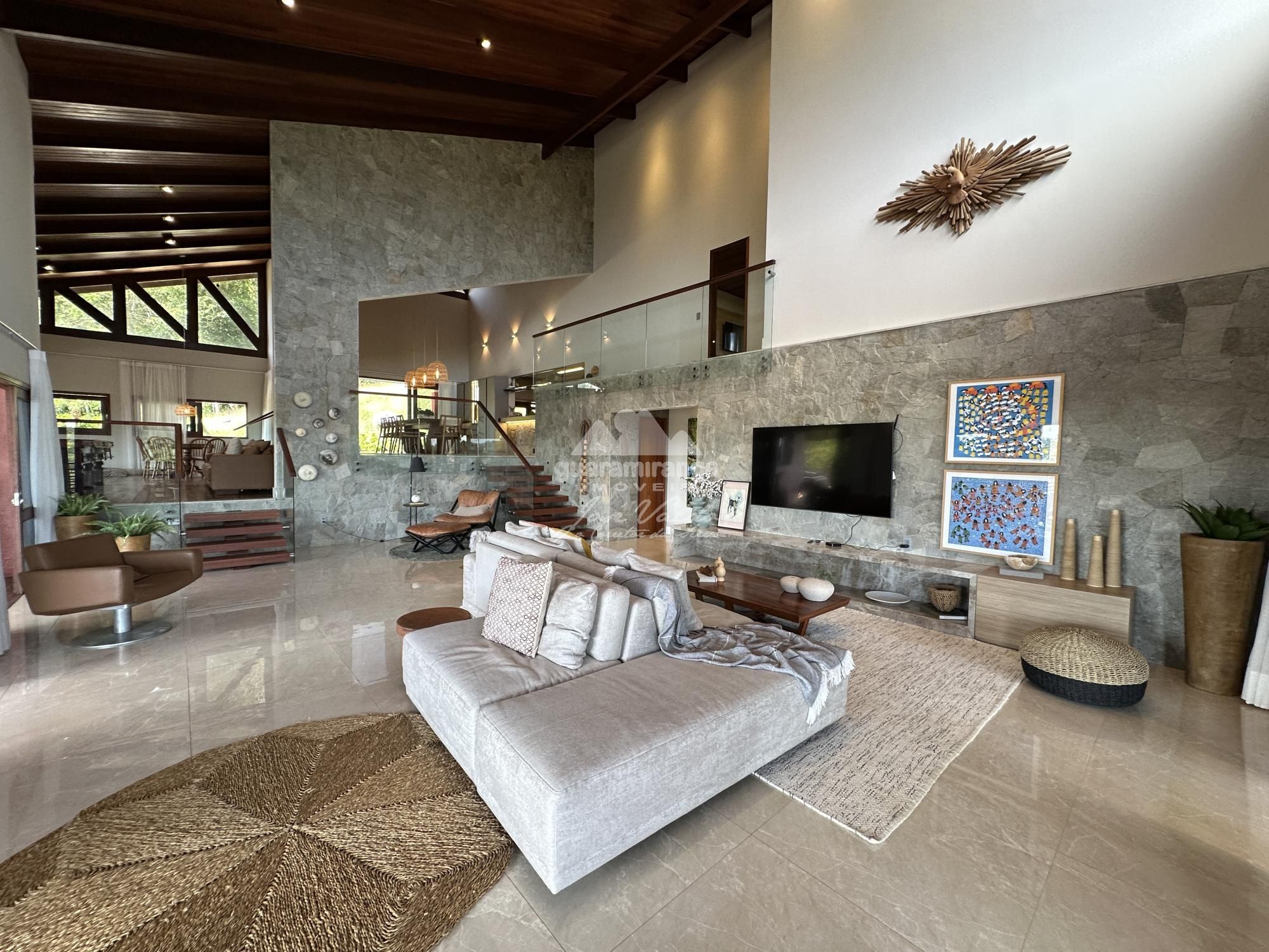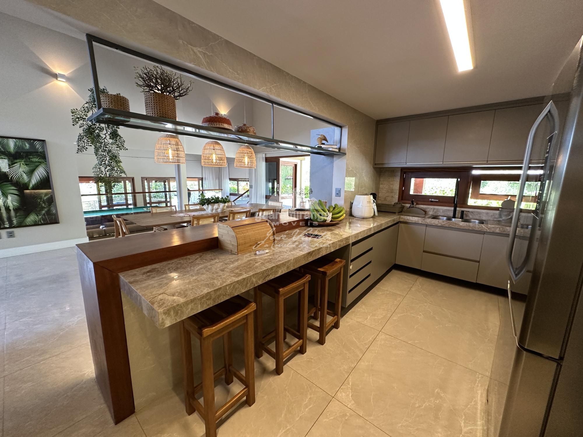 Casa luxuosa com 600m² de área construída, com uma das vistas panorâmicas mais bonitas do condomínio, sendo vista lago e para as montanhas. A mansão é dividida em sala 03 ambientes, sala de jantar, lavabo, despensa, adega, lavanderia, área de serviço, cozinha americana, salão de jogos, deck com espaço gourmet e vista para as montanhas, 7 quartos (sendo 6 suítes), possui uma ampla varanda suspensa em madeira com uma vista espetacular e lindo jardim amplo.