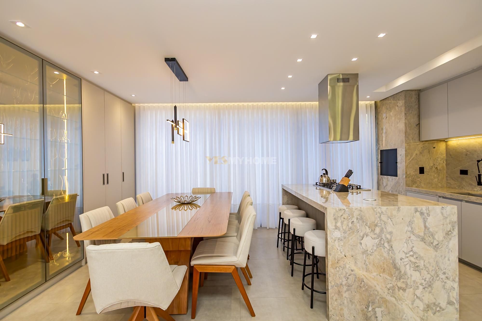 • Ambiente integrado, área gourmet, sala de jantar e estar acompanhada de lareira para os dias frios, e para aqueles momentos de descontração com a família e amigos a churrasqueira te espera. Ainda neste ambiente você conta com o espaço do café, adega, e o lavabo para atender bem aos seus convidados.