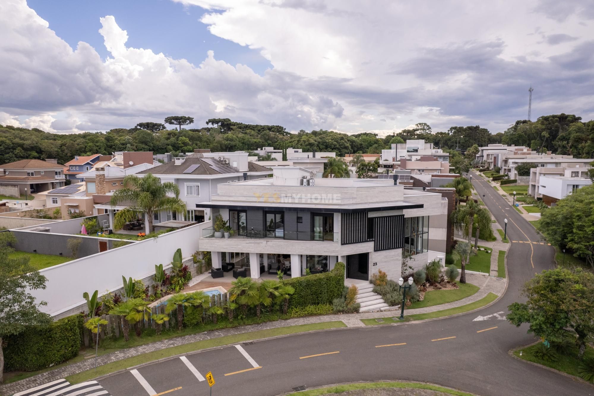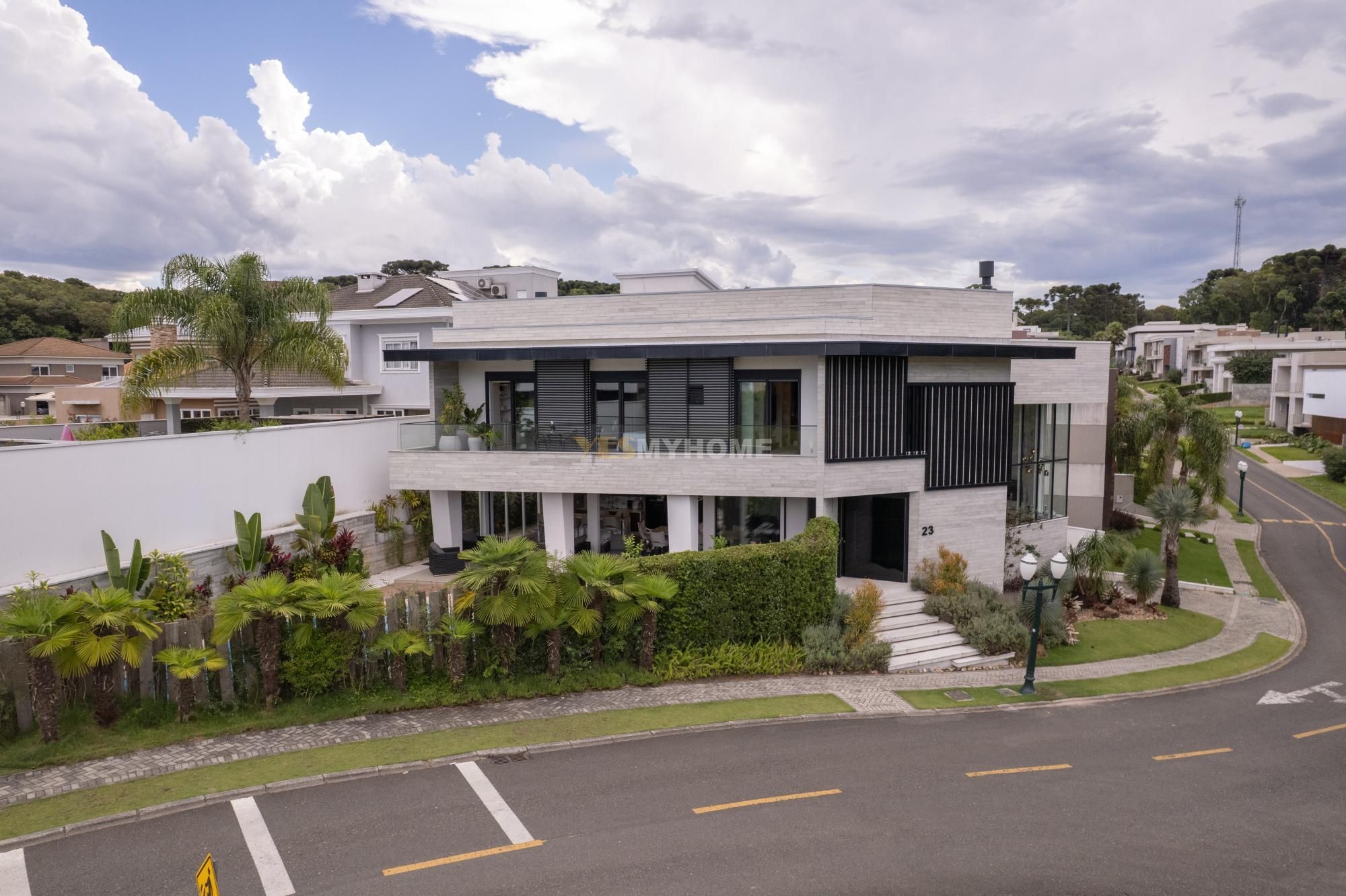 Em um condomínio fechado em Santa Felicidade, esta residência de alto padrão foi concebida para quem valoriza arquitetura autoral, tecnologia de ponta e conforto absoluto, possuindo assinatura de Fernanda Borio, tendo tido o projeto publicado em revista especializada.