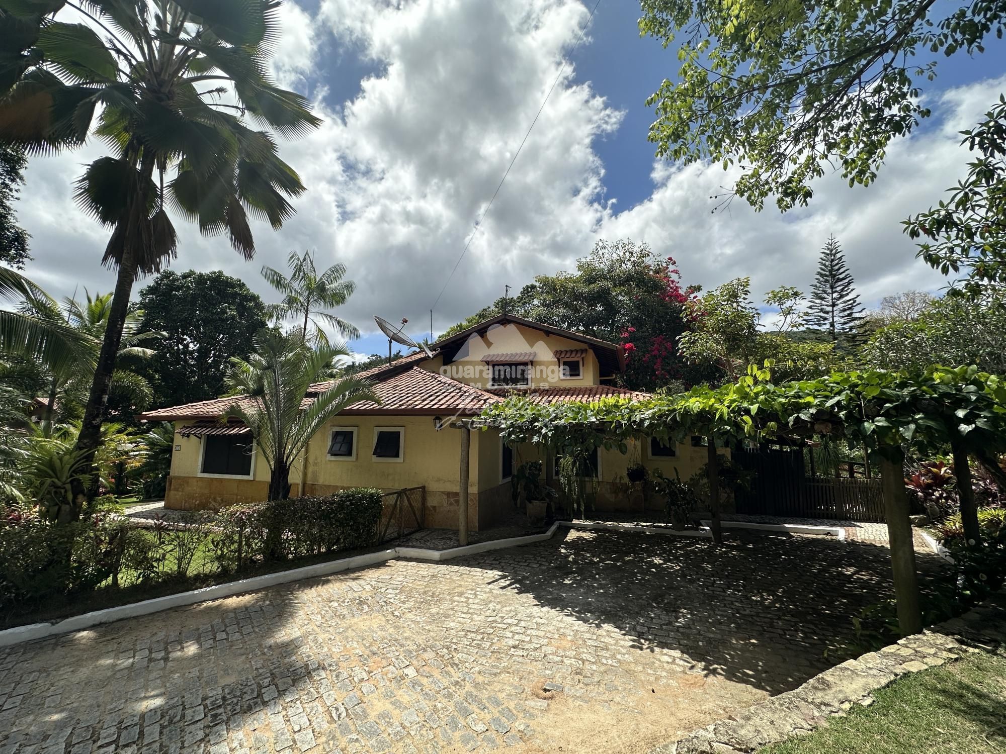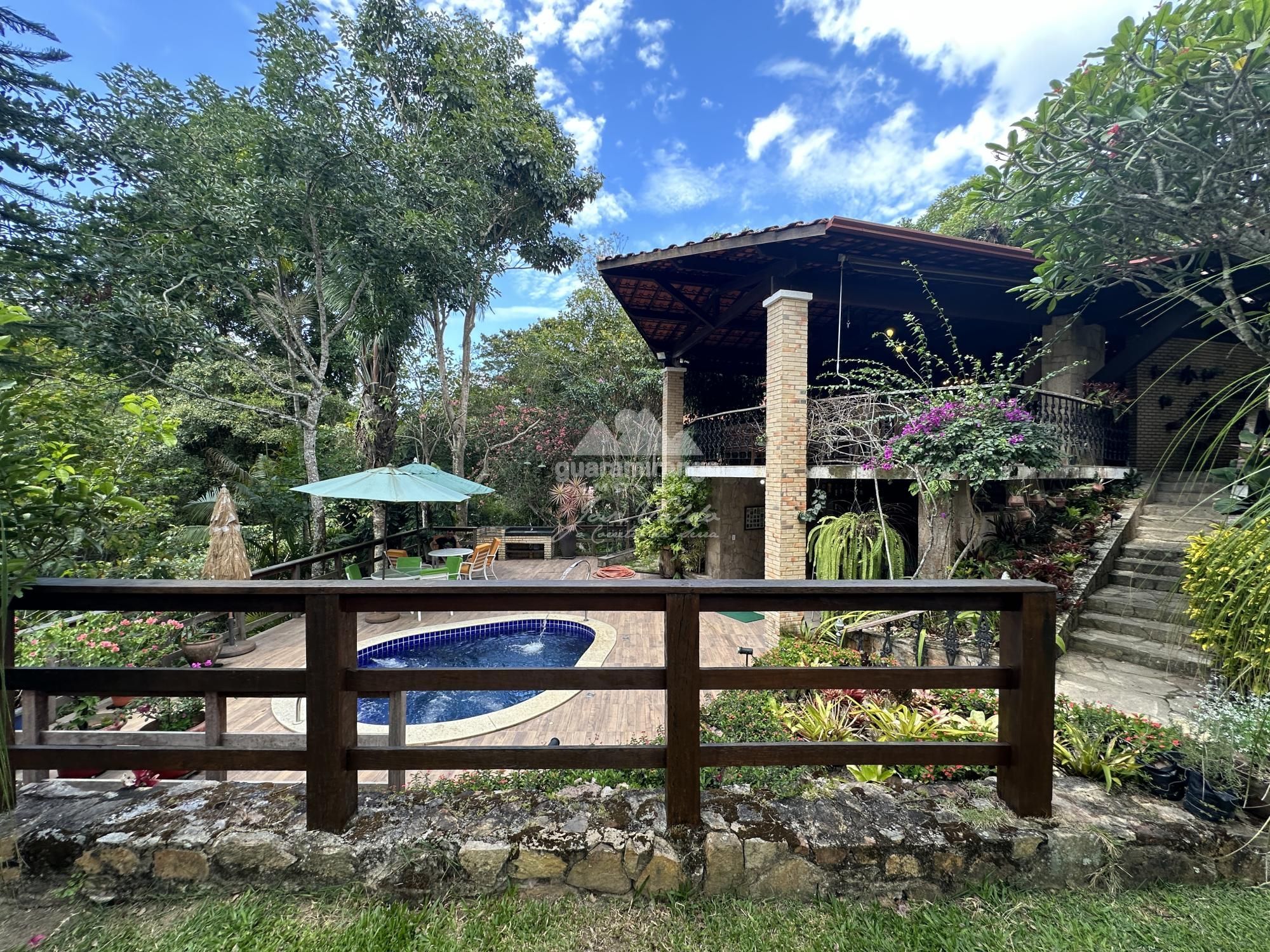 CLIQUE EM "VÍDEOS" | CASA 07 | CONDOMÍNIO GUARAVILLE ÁREA CONSTRUÍDA: 200 m² ALTITUDE: 620m ABASTECIMENTO DE ÁGUA: POÇO PROFUNDO Uma das propriedades com maior área útil dentro do condomínio, onde você poderá desfrutar de uma ampla área de lazer, muita área útil para as crianças e os pets aproveitarem, rio próximo e uma casa muito ampla com deck e piscina. Casa sede medindo aproximadamente 200 m², constituída por sala de estar, sala de jantar, lavabo, cozinha americana, despensa, 04 suítes sendo 01 com varanda no piso superior, varanda em L e amplo jardim. ⛲️ Na área externa possui espaço gourmet medindo 120 m², com 3 ambientes, forno de pizza, churrasqueira, fogão a lenha, lavabo, 02 suítes anexas e despensa, salão de jogos medindo aproximadamente 50 m² com mesa de bilhar e despensa, e ainda piscina aquecida e hidromassagem. ️ Toda estrutura alocada em um terreno medindo aproximadamente 3.000 m², sendo a casa com uma das maiores áreas úteis dentro do condomínio. O condomínio está localizado na região do Brejo, limite entre Baturité e Guaramiranga, sendo 7km para o centro de Guaramiranga e 11km para o Centro de Baturité. ☎️ Agende sua visita pelos telefones: (85) 98744-8001 / (85) 99864-8001 / (85) 98685-9164.