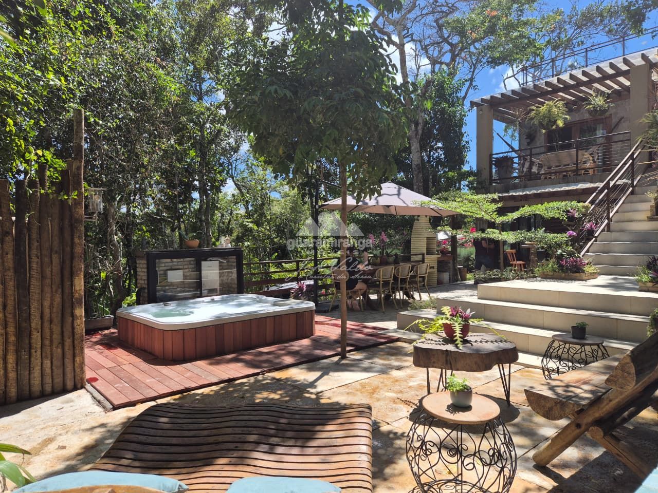 Com 390m² de área construída, a casa principal é um triplex único, projetado para se integrar harmoniosamente à natureza, com árvores passando por dentro da construção, criando uma conexão única com o ambiente. Possui 4 suítes amplas e confortáveis, 6 banheiros, uma sala de estar espaçosa em conceito aberto, área gourmet ideal para receber convidados, sala de jogos para momentos de lazer, uma varanda com vista para o verde e um deck na cobertura com churrasqueira, e redário.