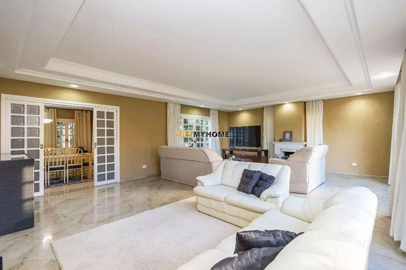 No pavimento térreo você encontra o amplo jardim com deck de churrasqueira, garagem para 4 carros grandes. Duas salas para festas com lareira, cozinha moderna e recém reformada, lavanderia e área de serviço com entrada independente. Atravessando as salas você encontra a master suite com closet banheiro com hidromassagem e sala privativa com lareira. Além de 1 Demi suite e 2 quartos de hóspedes.