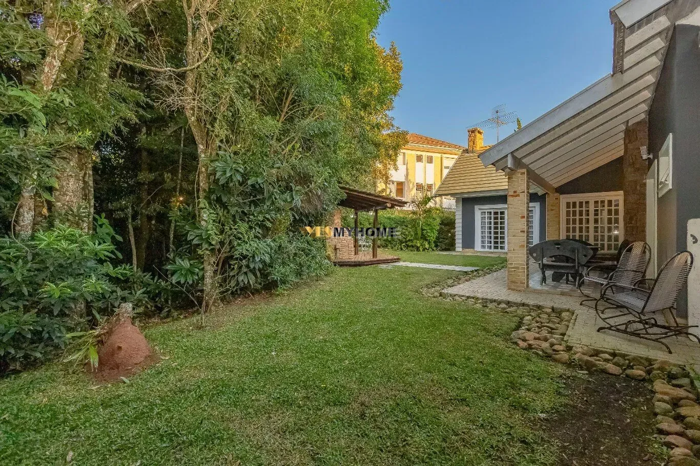 Encante-se com esta maravilhosa casa com arquitetura dos 90s. Grandes janelas e ventilação natural. Situada em um terreno dentro de condomínio terreno de 2016m2, sendo 456 M2 construídos. Cercada por paz e natureza abundante. Com 4 quartos, sendo 1 master suíte com hidromassagem e 1 Demi suite, esta propriedade oferece uma atmosfera única. No pavimento térreo você encontra o amplo jardim com deck de churrasqueira, garagem para 4 carros grandes. Duas salas para festas com lareira, cozinha moderna e recém reformada, lavanderia e área de serviço com entrada independente. Atravessando as salas você encontra a master suite com closet banheiro com hidromassagem e sala privativa com lareira. Além de 1 Demi suite e 2 quartos de hóspedes. No ático você encontra um escritório privativo e uma sala de ginástica além de uma grande despesa/sótão para armazenar. Além de um Solarium para aproveitar o por do sol. O amplo jardim e o deck com churrasqueira ao ar livre são perfeitos para desfrutar de momentos especiais. A decoração clássica e a arquitetura inspirada no estilo americano, conferem um charme especial a esta residência, que apresenta um estilo único. Com 3 salas espaçosas para eventos e uma área de serviço com dependência individual, aqui você encontrará o equilíbrio entre privacidade e conforto. Rodeada pela beleza da mata nativa, esta casa proporciona um pôr do sol deslumbrante, tornando cada dia ainda mais especial. Agende uma visita e apaixone-se por este refúgio único! Pergunte pela opção de permuta por Apartamento em Curitiba.