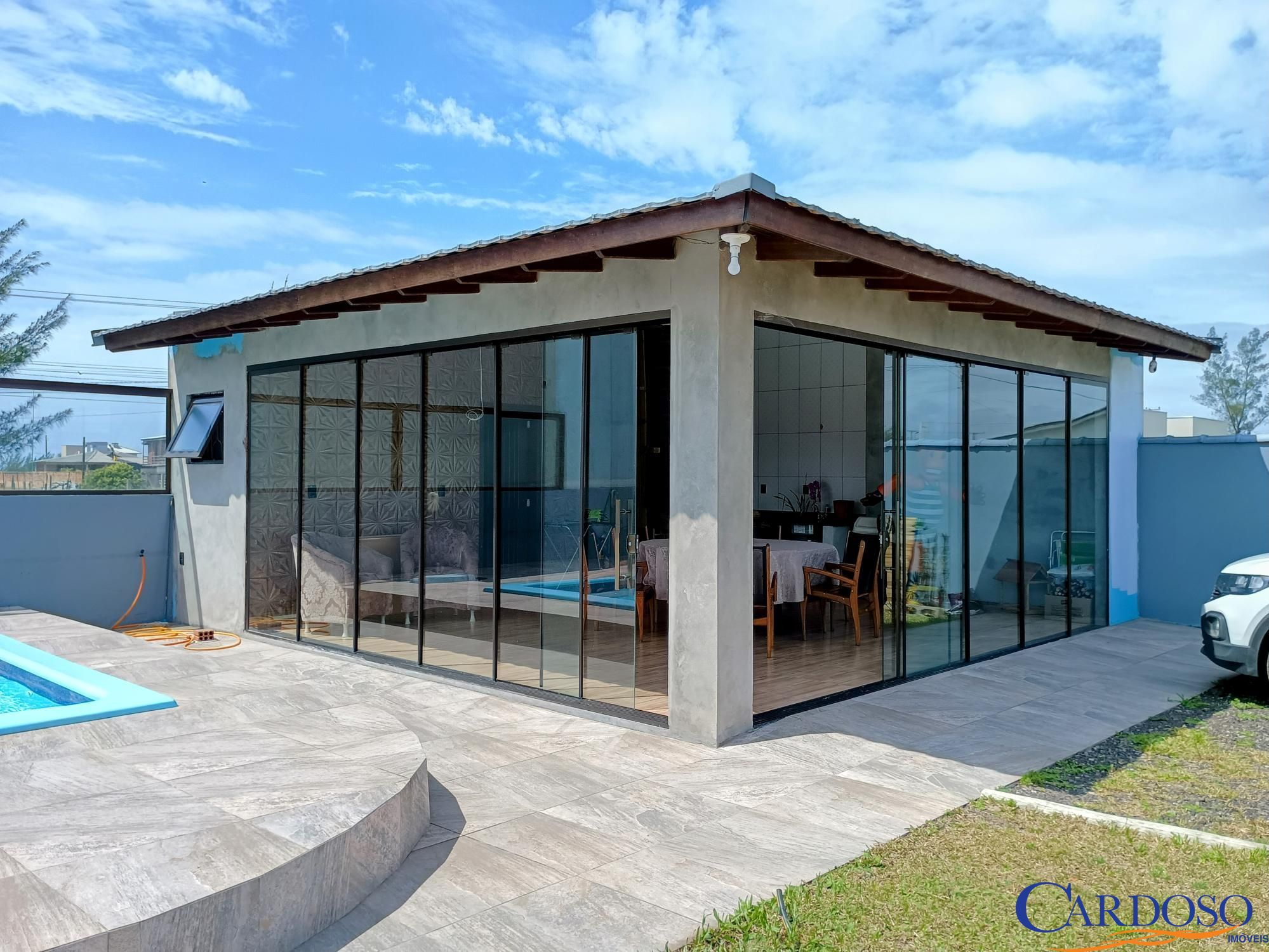Encantadora residência com 114m² de área construída, acompanhada de um quiosque de 48m², ideal para confraternizações! O quiosque possui banheiro, churrasqueira e um ambiente espaçoso para reunir amigos e familiares. Ao lado, uma belíssima piscina completa o cenário de lazer.