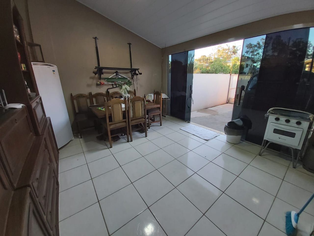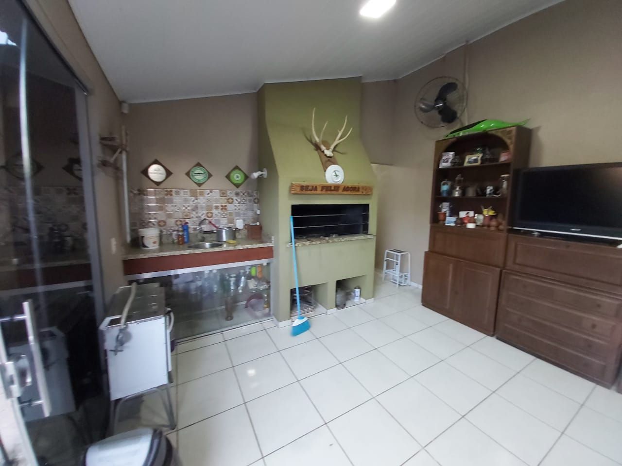O imóvel conta com dois quartos, sala, cozinha, banheiro, garagem para até 3 carros, salão com churrasqueira e sala e area de serviço,