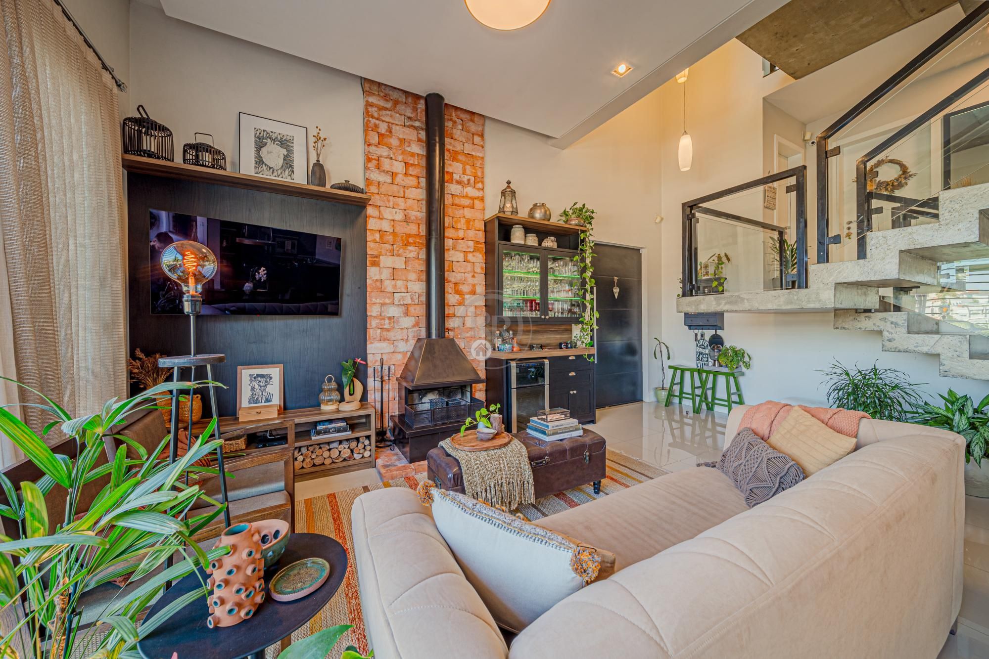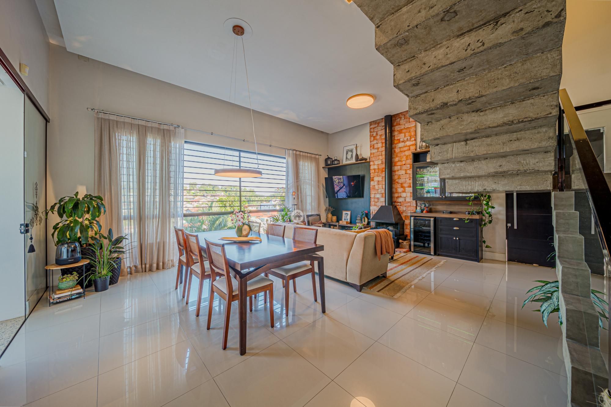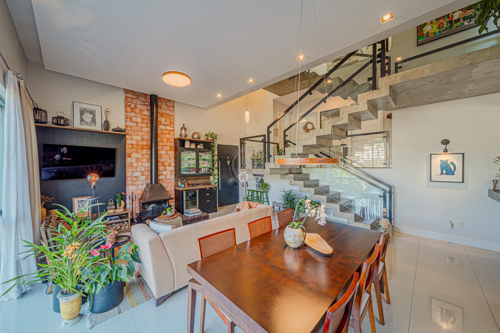 Além de um amplo living integrando as salas com uma cozinha moderna, a casa possui ainda uma área de festas muito bonita e aconchegante, com churrasqueira, cozinha auxiliar, home-theater, adega e mesa de jogos. Um ambiente muito acolhedor e que certamente proporcionará ótimos momentos com a família e amigos.