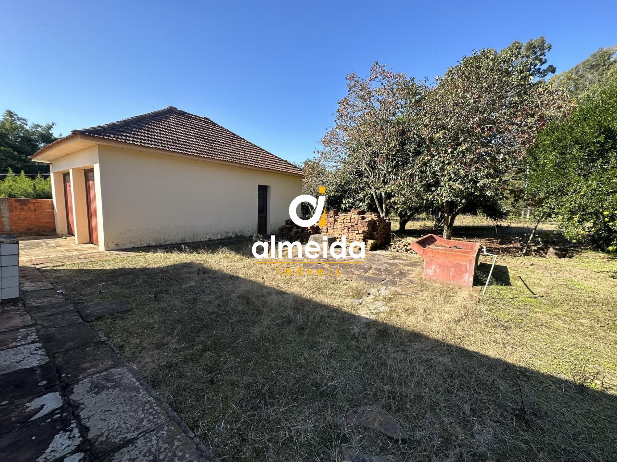Casa com 3 dormitórios, cozinha, sala de estar, sala de jantar, área de serviço, despensa e banheiro social. Possui 2 vagas de garagem. A casa está disposta em um amplo terreno com excelente metragem de 4078,04 m².