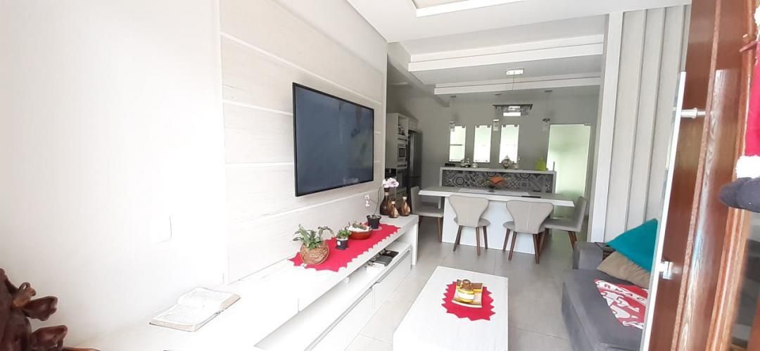 A casa possui sala de estar, cozinha, 2 dormitórios sendo uma suíte com hidromassagem, 2 banheiros, área de serviço, garagem coberta, piscina, salão de festas com churrasqueira e grande espaço nos fundos de área coletiva com árvores.