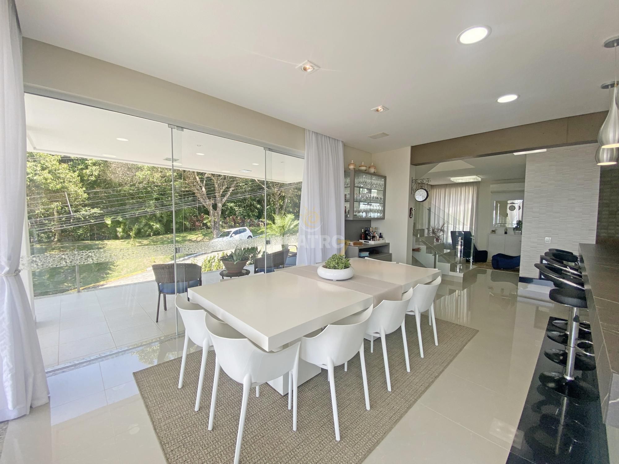 Casa em condomínio de alto padrão com 4 suítes sendo a suíte master com banheira de Hidromassagem e belíssima vista da orla da Praia de Bombas. Finamente mobiliada e decorada possui espaços amplos oferecendo comodidade e muito conforto para você e sua família. no andar superior possui 04 suítes sendo 02 com vista para o mar, 01 possui acesso a um agradável jardim de inverno.