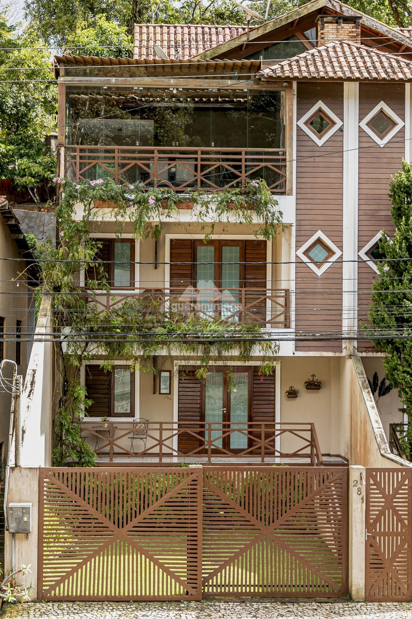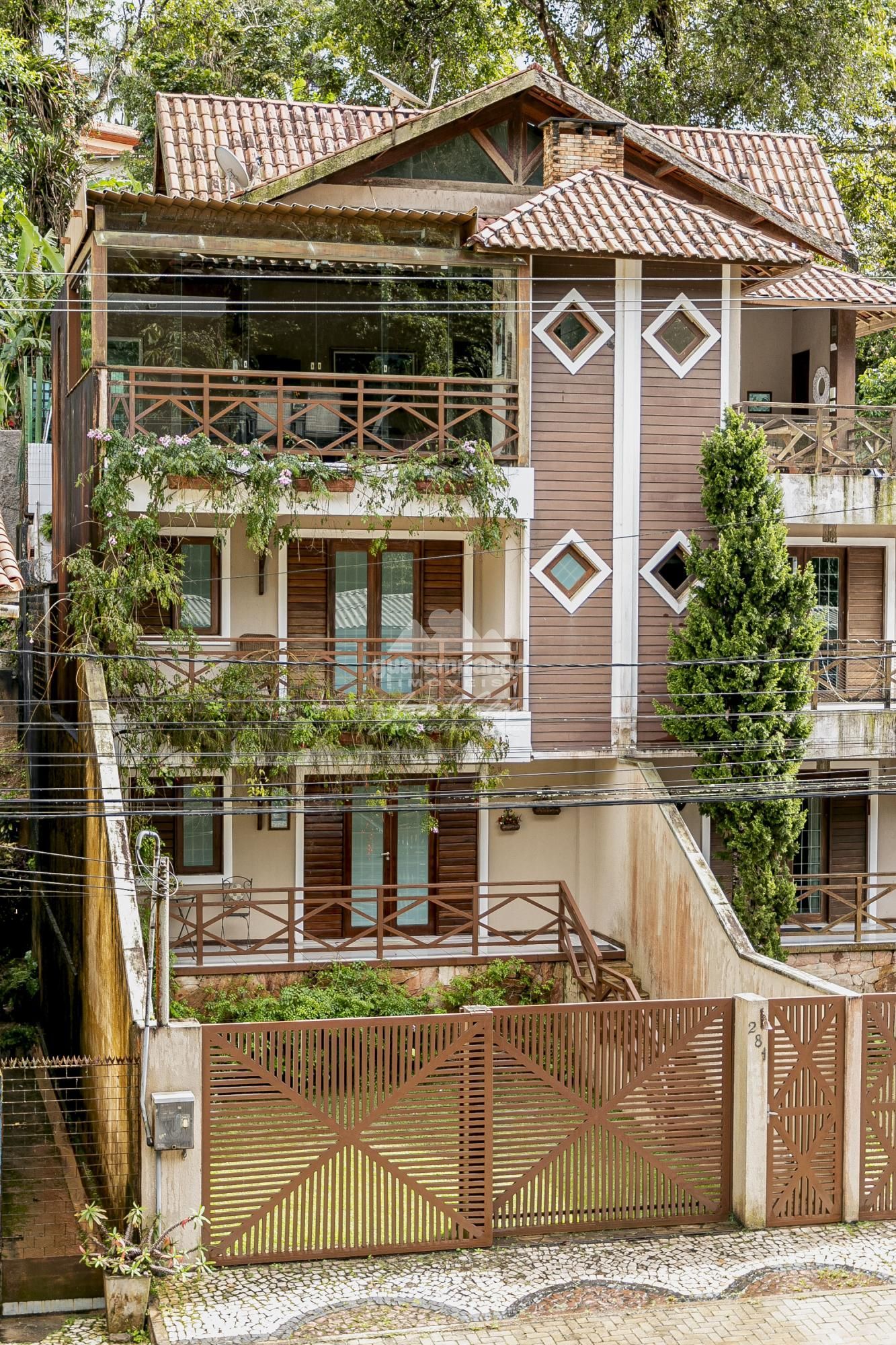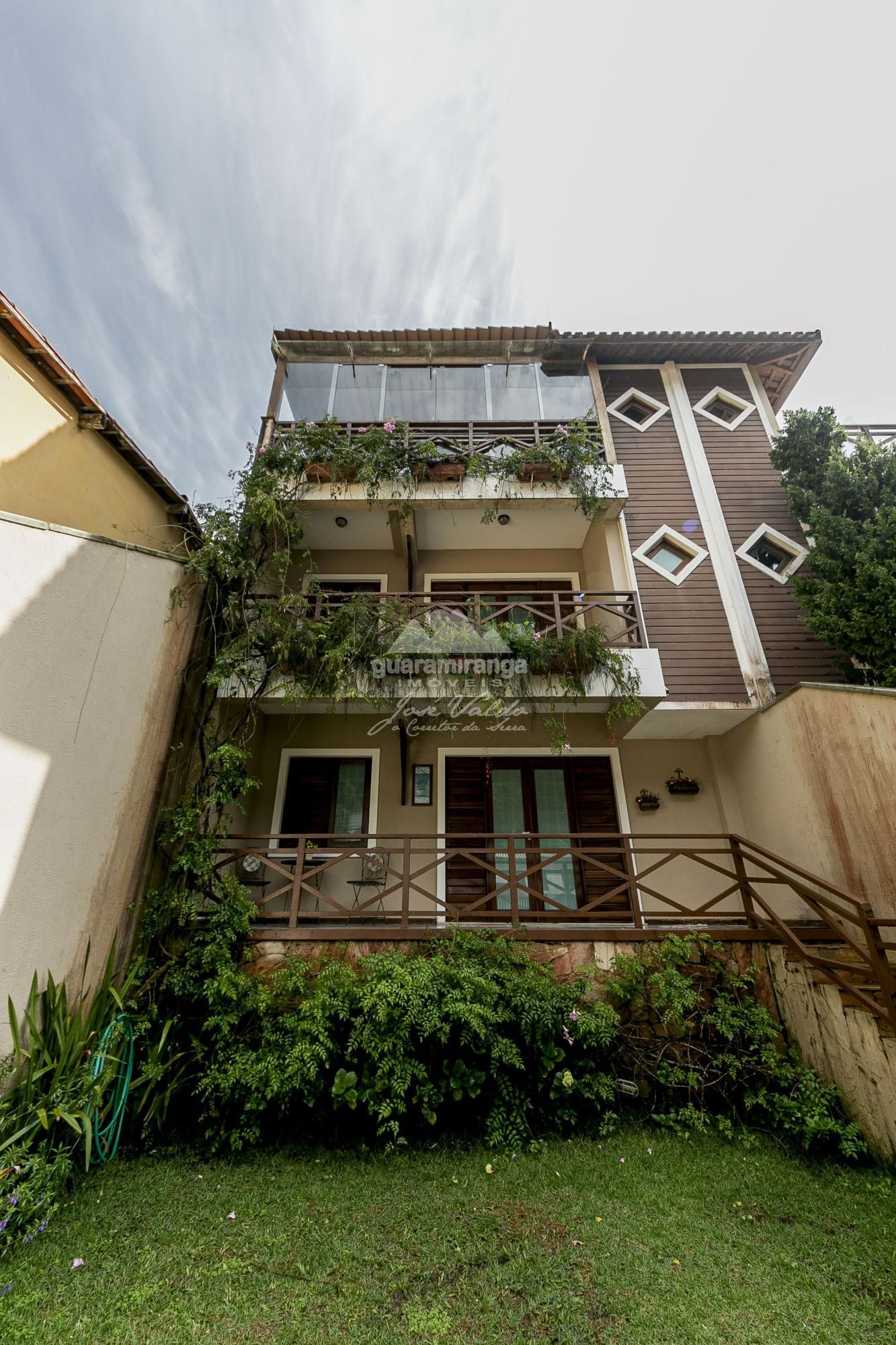 TRIPLEX 281 ÁREA CONSTRUÍDA: 405 m² A casa possui sala de estar, sala de jantar, cozinha projetada, banheiro social, 05 suítes, sendo 02 suítes com varanda e deck todo completo com churrasqueira com vista para a cidade, ainda possui um elevador panorâmico com capacidade de quatro pessoas, e 02 vagas de garagem. Localizado a 200m da Praça Gastronômica o imóvel é perfeito para quem busca conforto, espaço e ainda permanecer no Centro de Guaramiranga, próximo aos restaurantes, lojas e principais eventos da cidade. ☎️ Agende sua visita pelos telefones: (85) 98744-8001 / (85) 99864-8001 / (85) 98685-9164.
