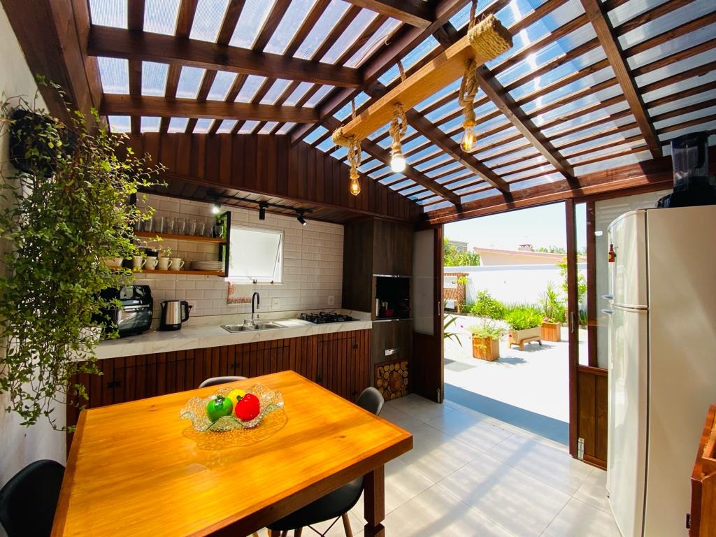 Casa de festas com 65m² de área privativa, composta por amplo espaço gourmet com fogão a lenha e churrasqueira, 1 dormitório, 1 banheiro e lavanderia.