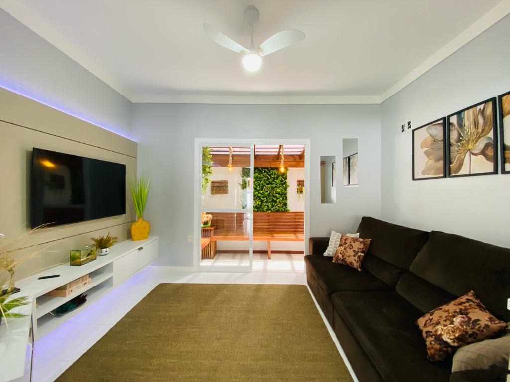 Linda Casa Alto Padrão no Centro de Paulo Lopes! Imóvel possui 255m² de área construída, distribuída da seguinte forma: Casa principal com 190m² de área privativa, composta por 5 dormitórios, sendo 2 suítes, 2 banheiros sociais, 1 lavado, sala de estar, sala de TV, sala de jantar integrada com a cozinha e espaço gourmet com churrasqueira e 2 vagas de garagens cobertas. Casa de festas com 65m² de área privativa, composta por amplo espaço gourmet com fogão a lenha e churrasqueira, 1 dormitório, 1 banheiro e lavanderia. Terreno possui 525m² de área total com jardim gramado e arborizado. Ótimo padrão de acabamento, permanecendo no imóvel todos os móveis planejados. Excelente localização, com rua calçada no Centro da cidade de Paulo Lopes com toda a infraestrutura do comércio local com bancos, restaurantes, supermercado, fácil acesso a BR101 sentido sul ou norte e apenas 10km da Praia da Gamboa na cidade de Garopaba. Imóvel possui escritura pública do terreno, construção não averbada. Proprietário aceita proposta e estuda imóvel de menor valor como parte de pagamento na cidade de Paulo Lopes. Imóvel ideal para quem procura segurança e comodidade. Entre em contato e agende uma visita!