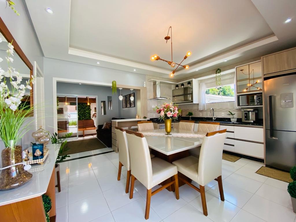 Casa principal com 190m² de área privativa, composta por 5 dormitórios, sendo 2 suítes, 2 banheiros sociais, 1 lavado, sala de estar, sala de TV, sala de jantar integrada com a cozinha e espaço gourmet com churrasqueira e 2 vagas de garagens cobertas.