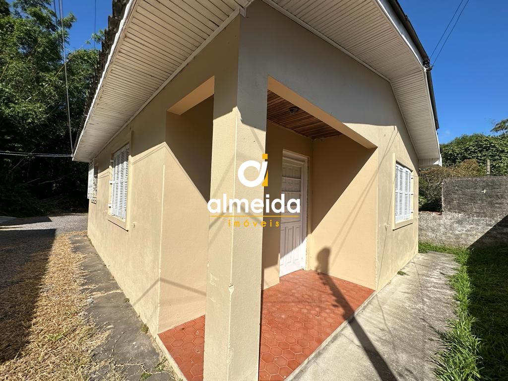 Casa com 1 dormitório, cozinha, sala de estar, área de serviço e banheiro social.