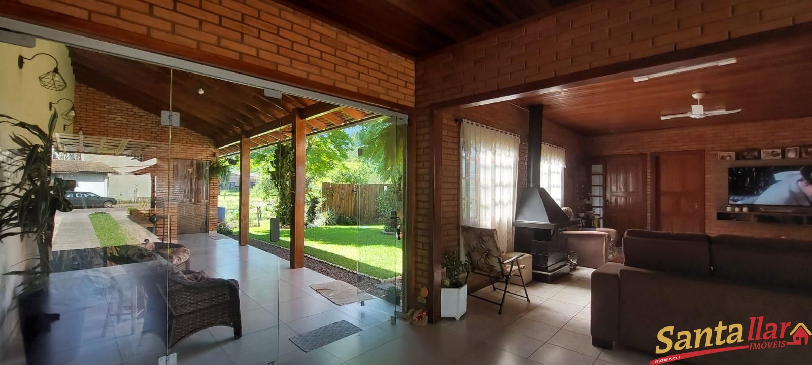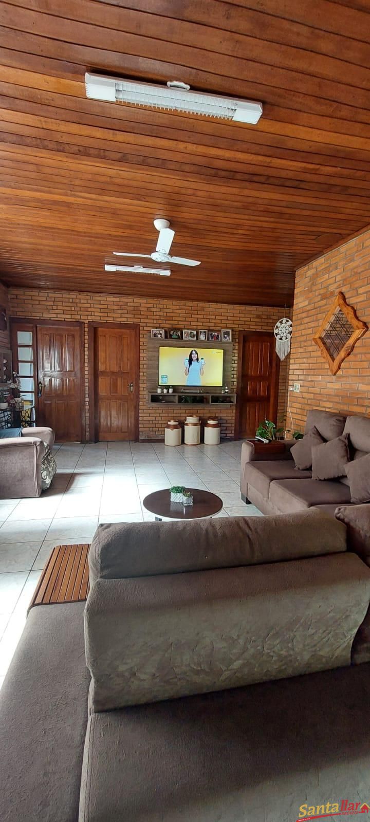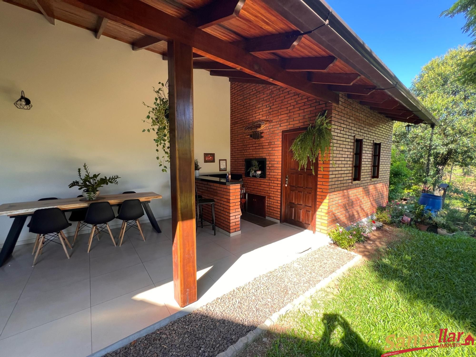 Alvenaria no Centro de Vale do Sol/RS. Possui 03 dormitórios, 02 salas de estar, sala de jantar, cozinha, despensa, escritório, lavanderia, 02 banheiros, área gourmet com churrasqueira, depósito, garagem e amplo pátio. Ficam no imóvel 03 ares condicionados, lareira, parte da cozinha e dormitório solteiro.